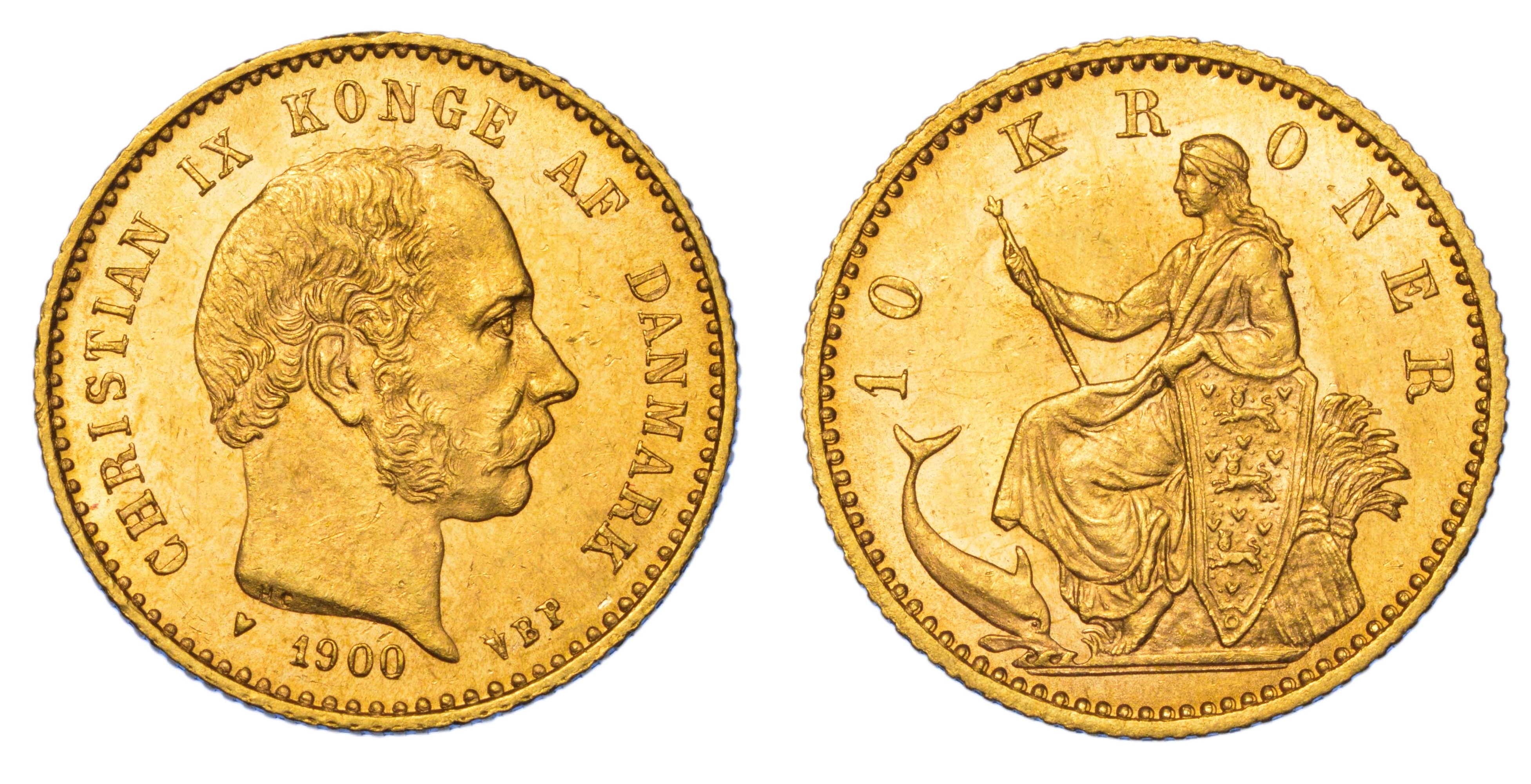 DANIMARCA. CHRISTIAN IX, 1863-1906. 10 Kroner 1900.