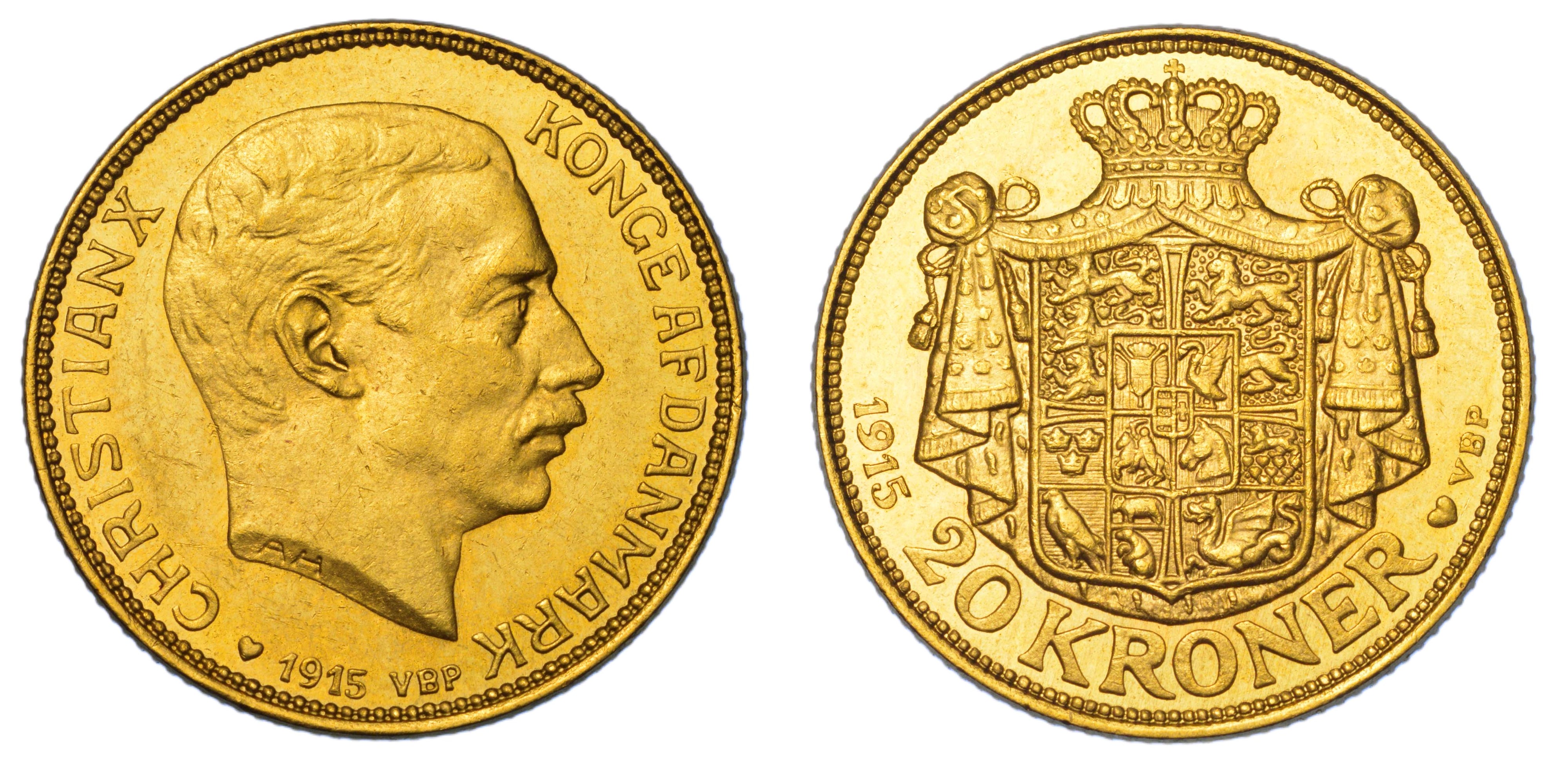 DANIMARCA. CHRISTIAN X, 1912-1947. 20 Kroner 1915.