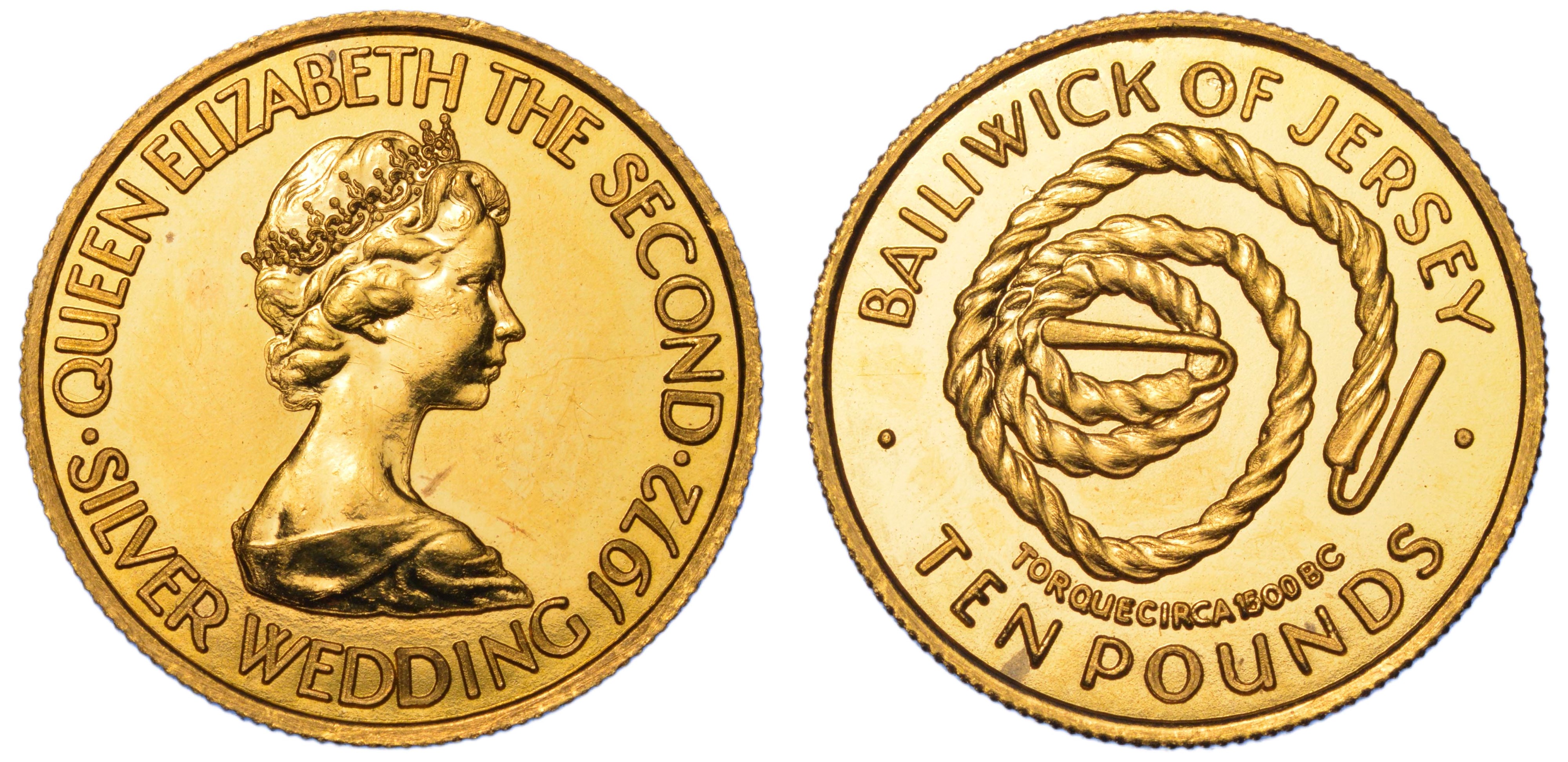 JERSEY. ELIZABETH II, 1953-2002. 10 Pounds 1972.