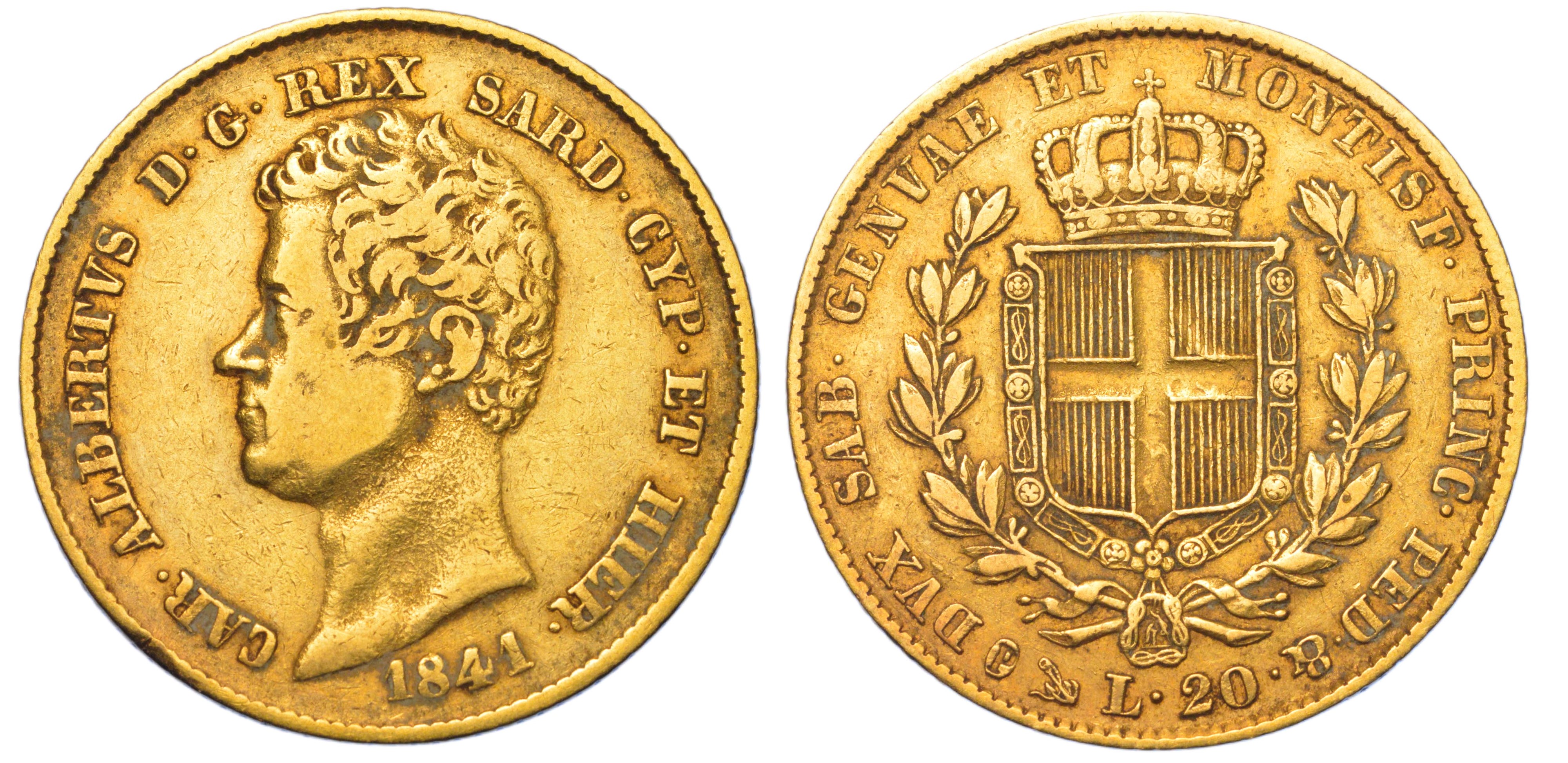 REGNO DI SARDEGNA. CARLO ALBERTO DI SAVOIA, 1831-1849. 20 Lire 1841. Genova.