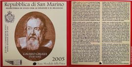 San Marino 2005 – 2 Euro commemorativi bimetallici FdC “Galileo Galilei” in folder.