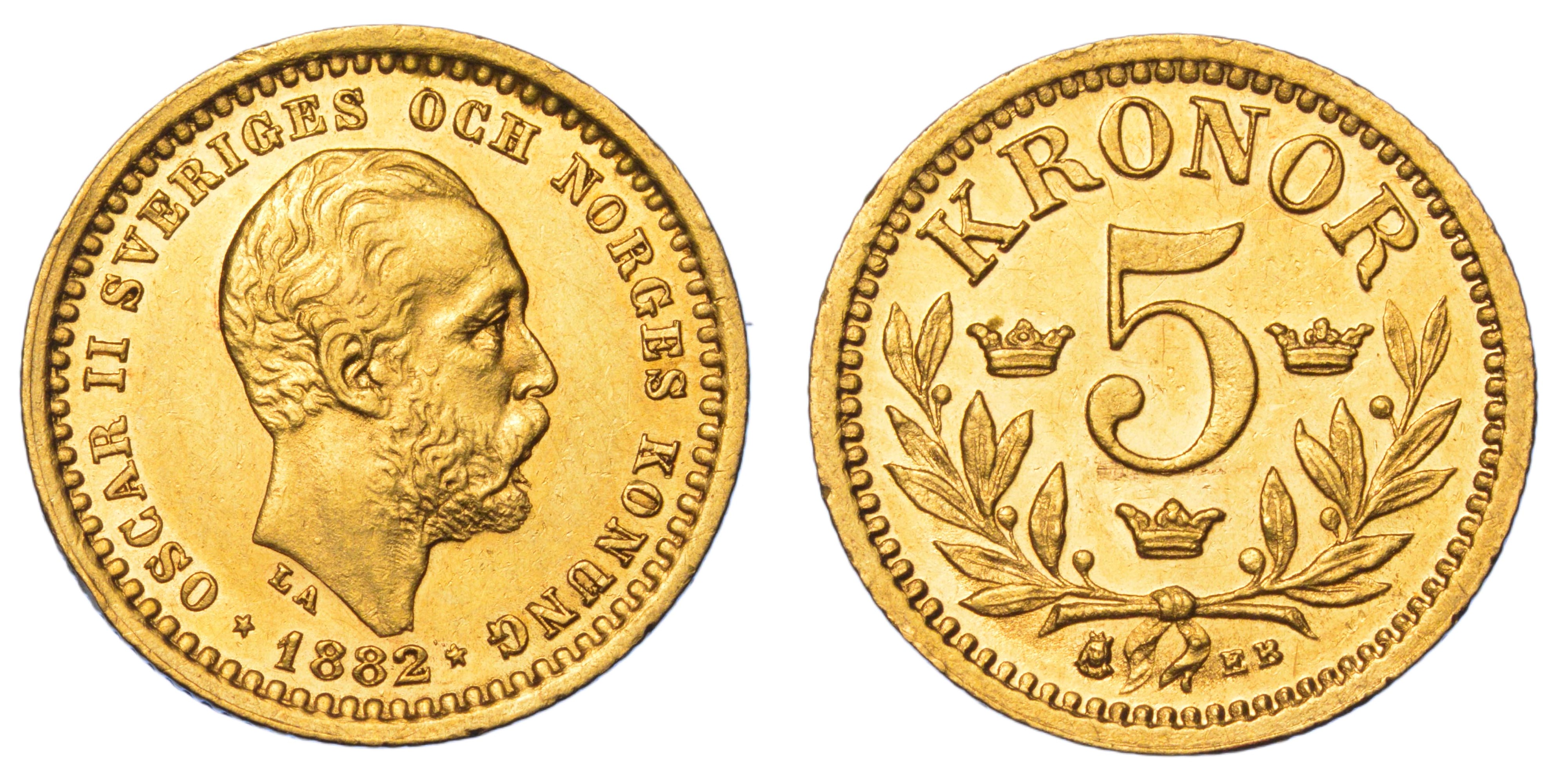 SVEZIA. OSKAR II, 1872-1907. 5 Kronor 1882.