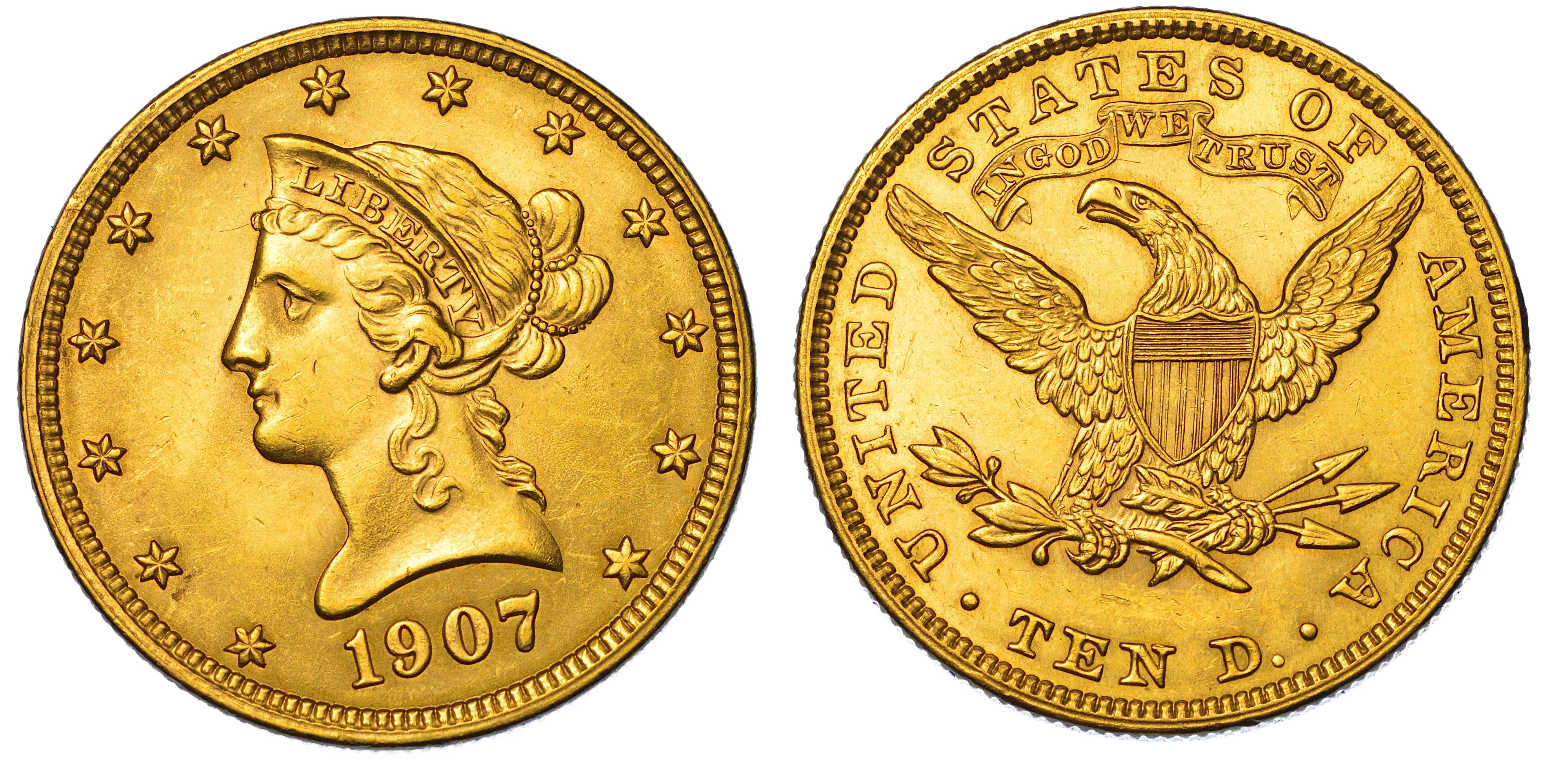 USA. REPUBLIC. 10 Dollars “Coronet Head” 1907.