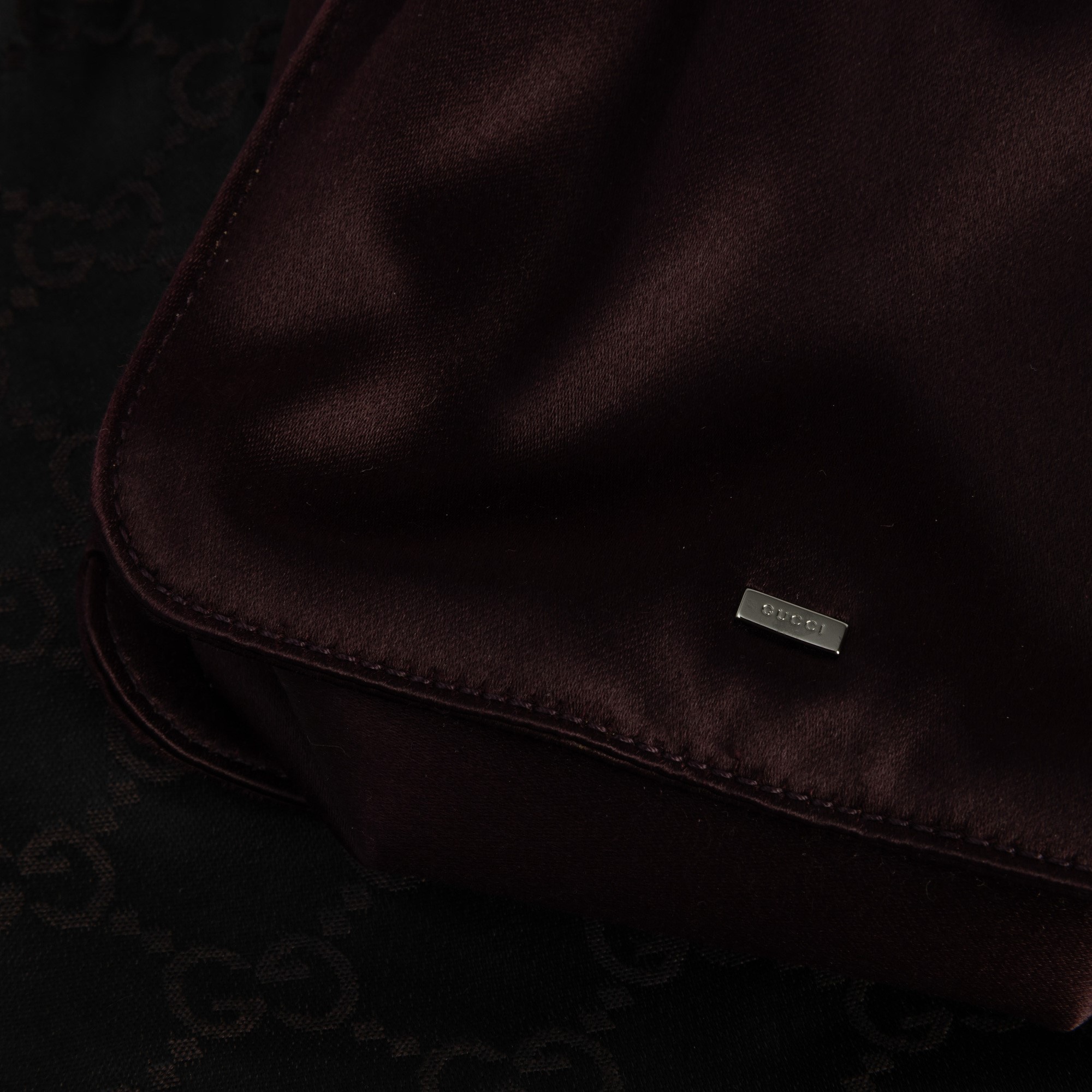 In raso color prugna.
