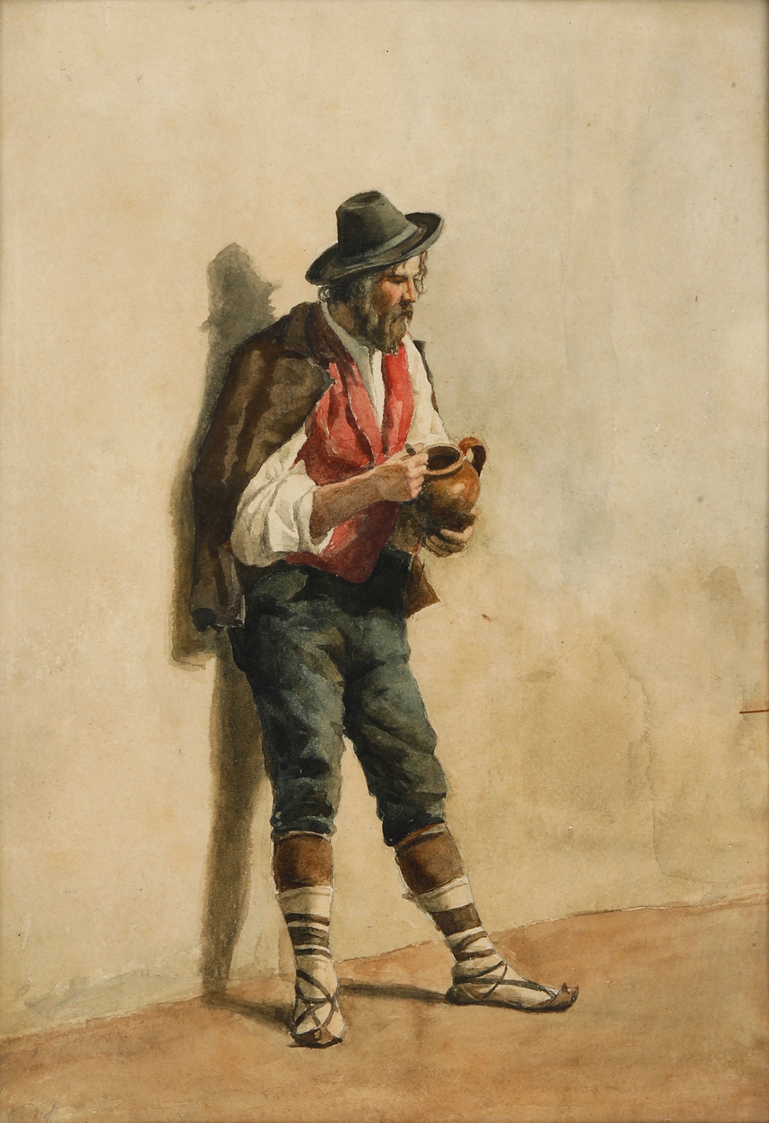 Acquerello raffigurante figura maschile. XIX-XX secolo