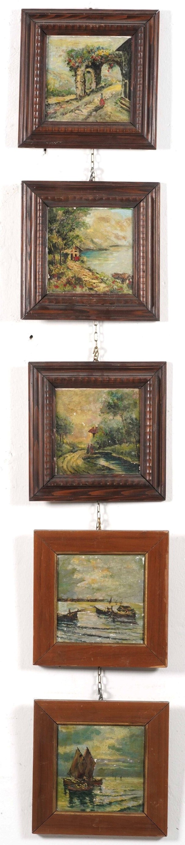 Cinque mattonelle dipinte. XX secolo