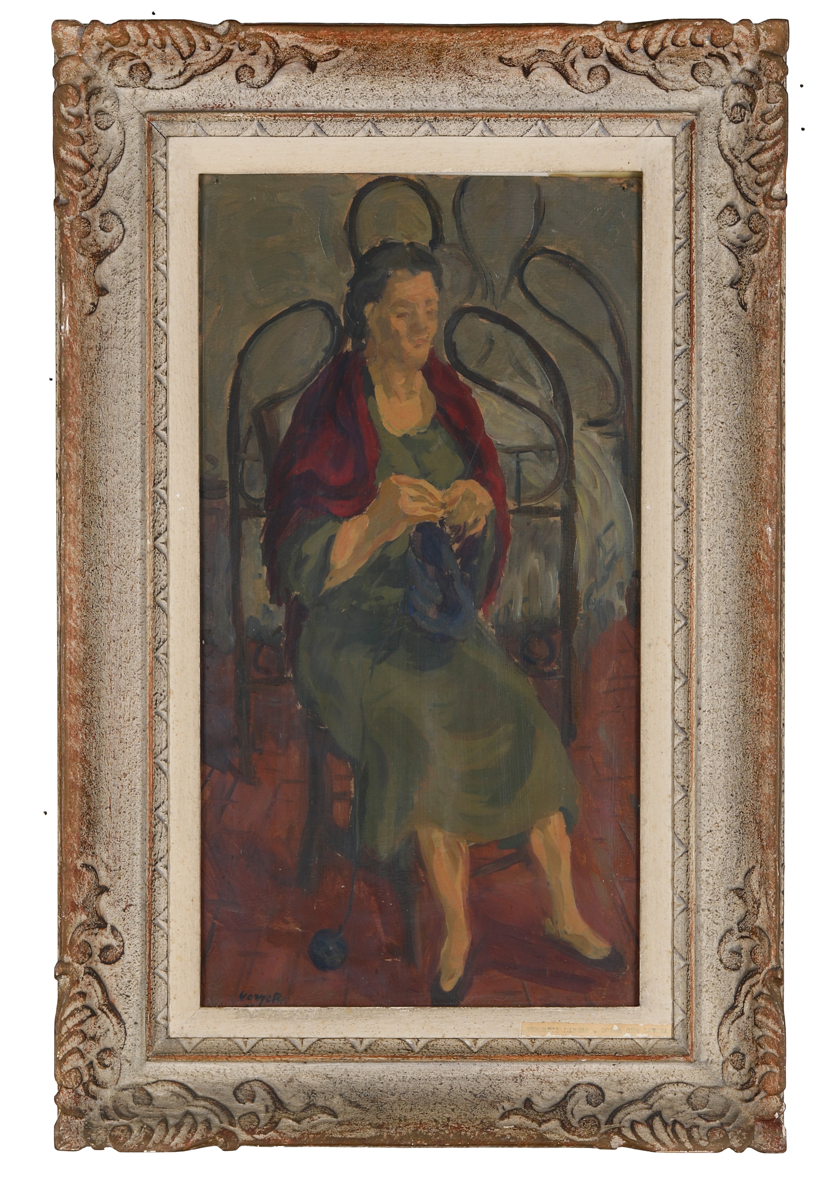 al retro etichetta cartacea della Galleria Rotta di Genova