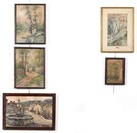 Lotto di 5 acquerelli. XIX-XX secolo