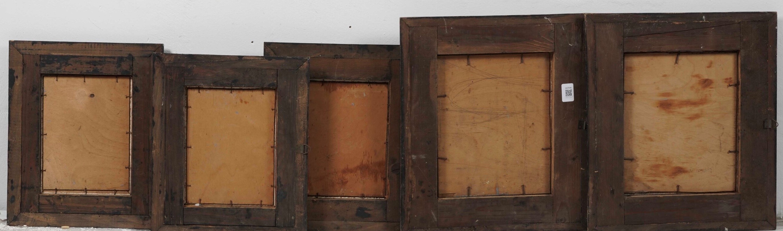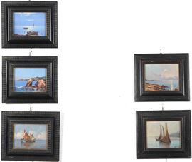 Lotto di cinque vedute marine con velieri in cornici ebanizzate. XIX-XX secolo