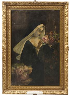 Pittore del XIX-XX secolo Suora e fiori