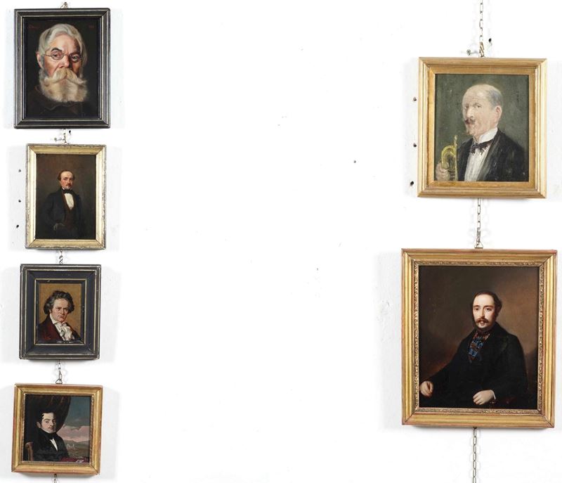 Sei piccoli dipinti con ritratti maschili. XIX-XX secolo