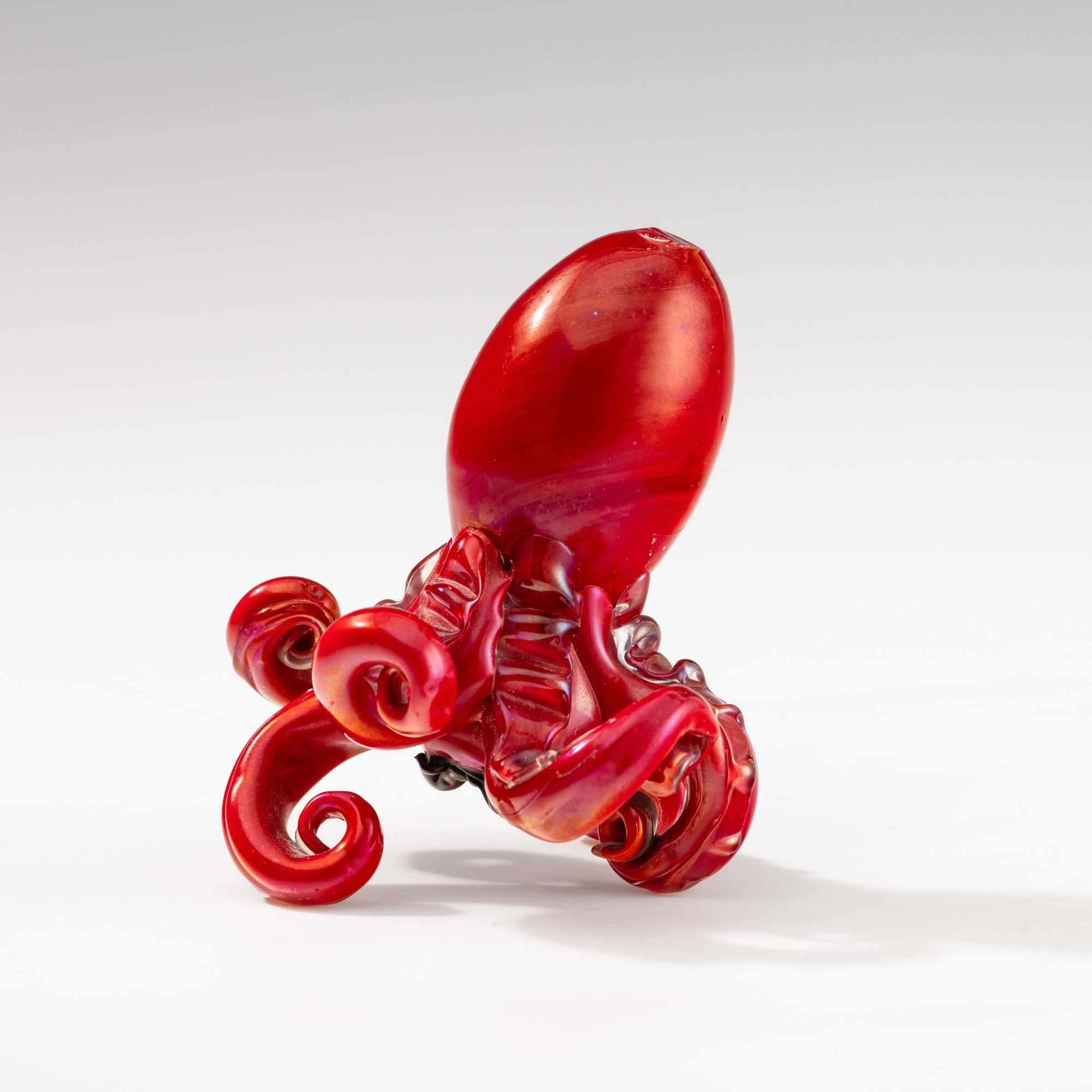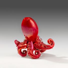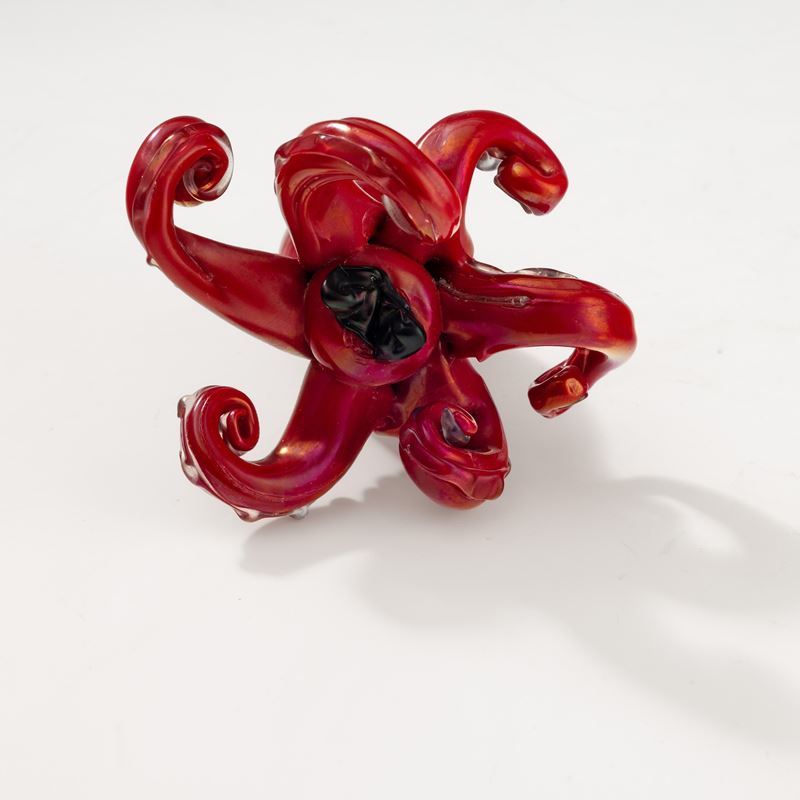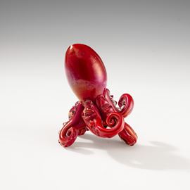 Rara scultura in forma di polipo in pasta vitrea corallo e bocca applicata nera.