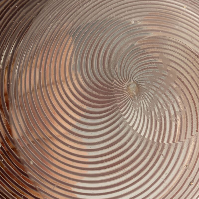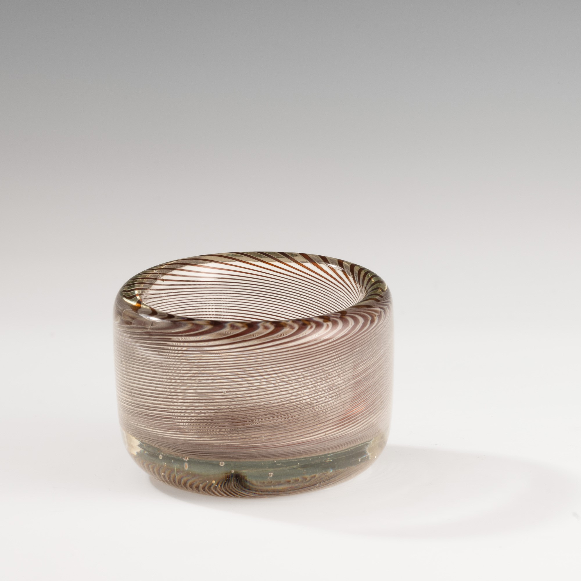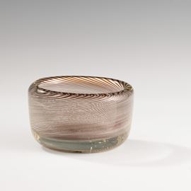 Coppa ovale in vetro pesante con decoro di filigrana sommersa ametista.