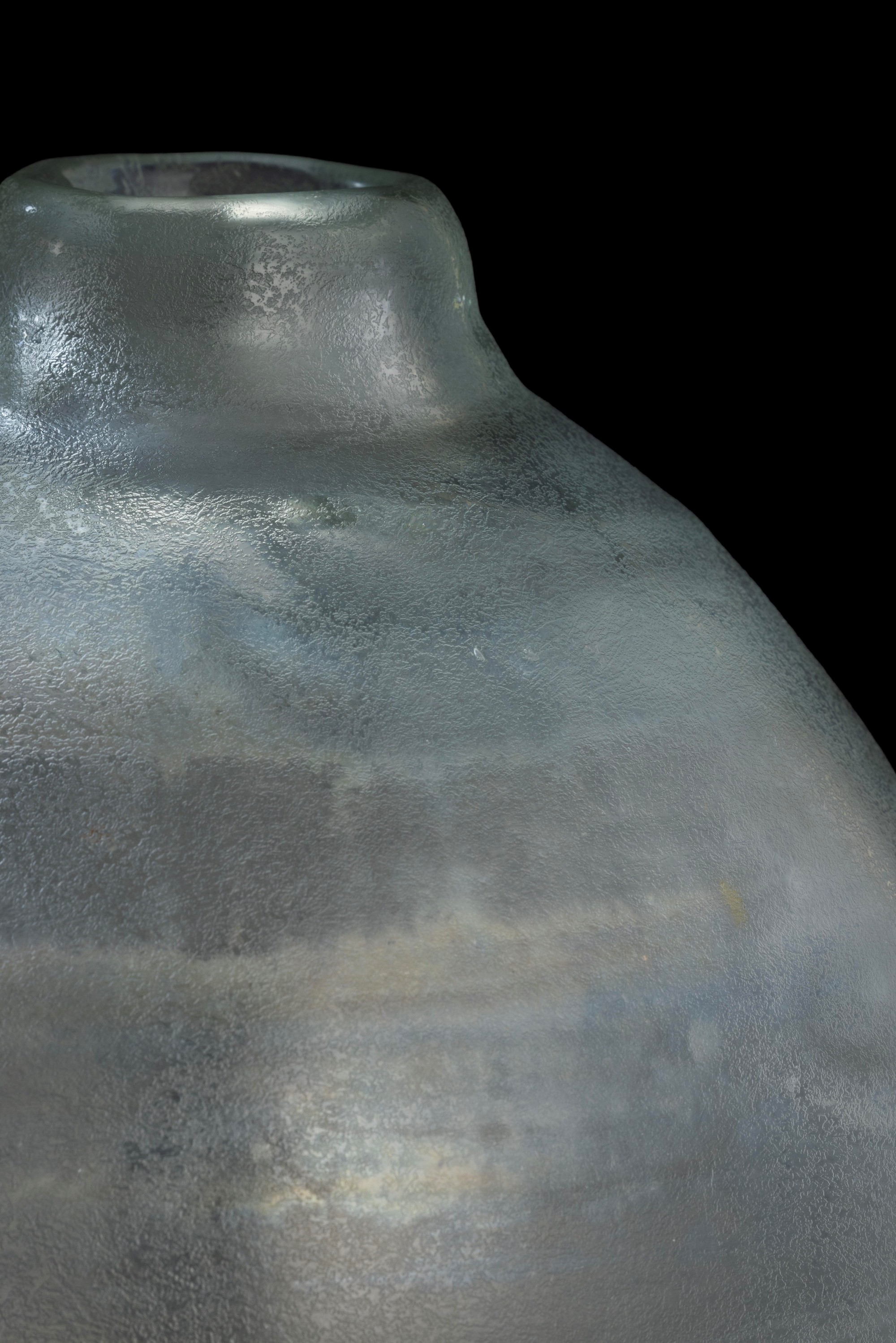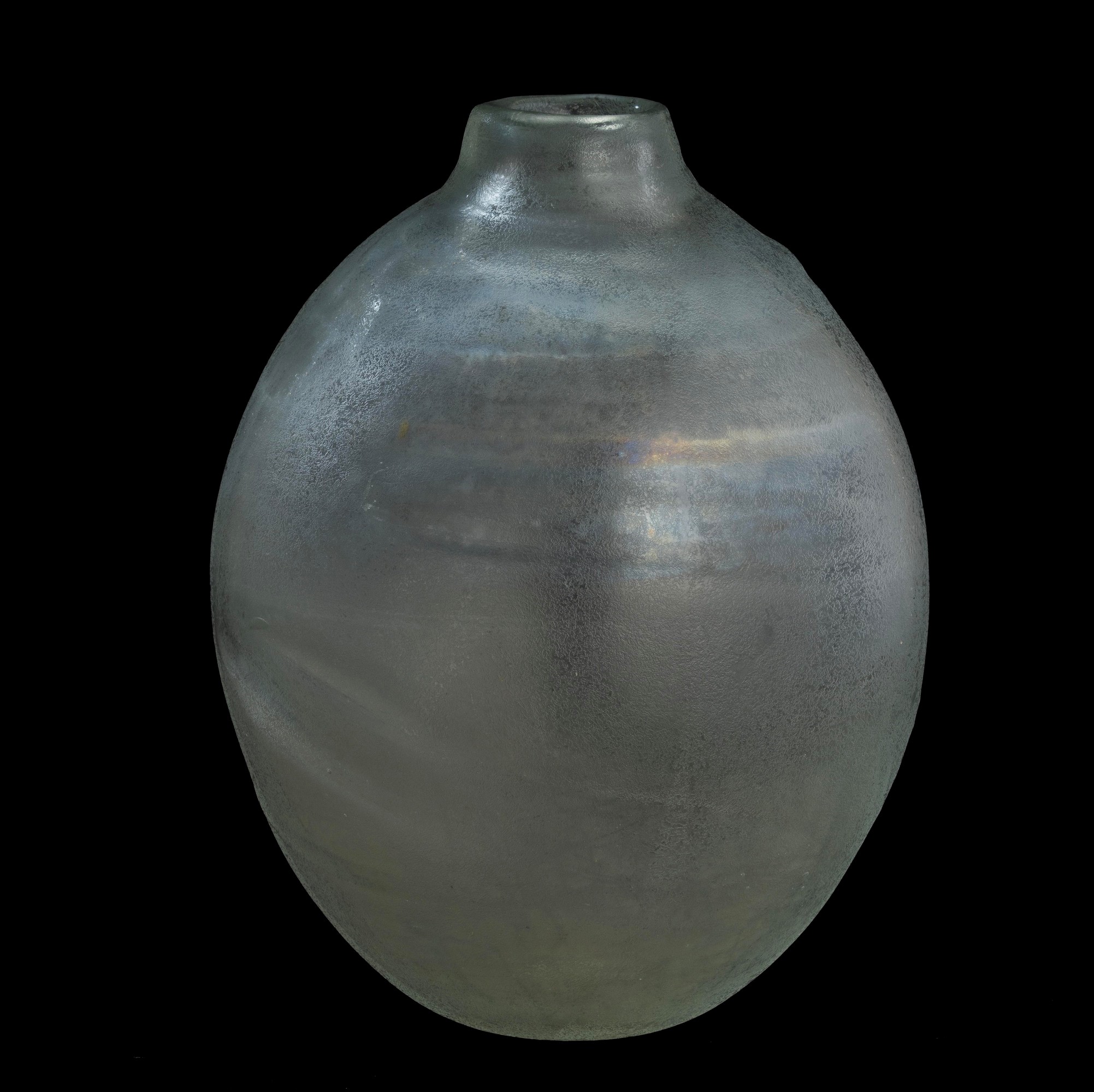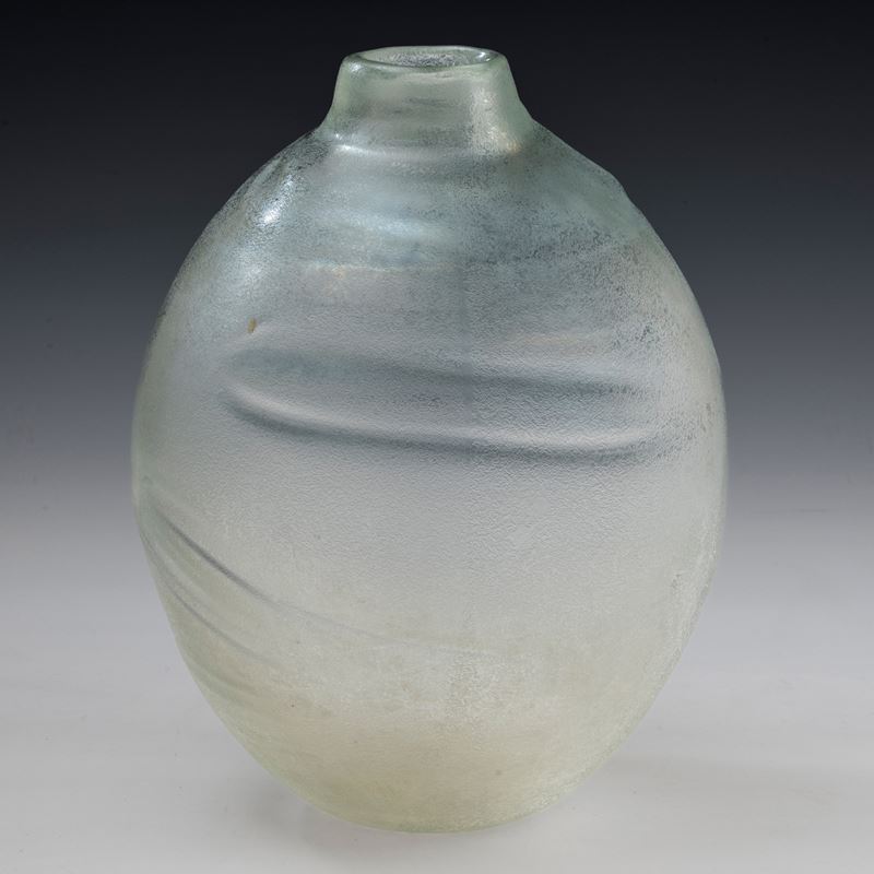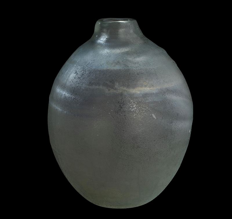 Grande vaso serie Corrosi decorato da rilievi con superficie interamente lavorata all’acido e iridata.