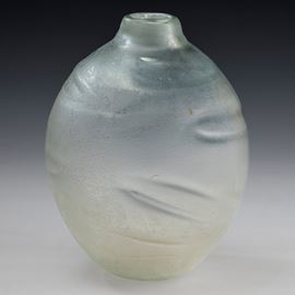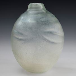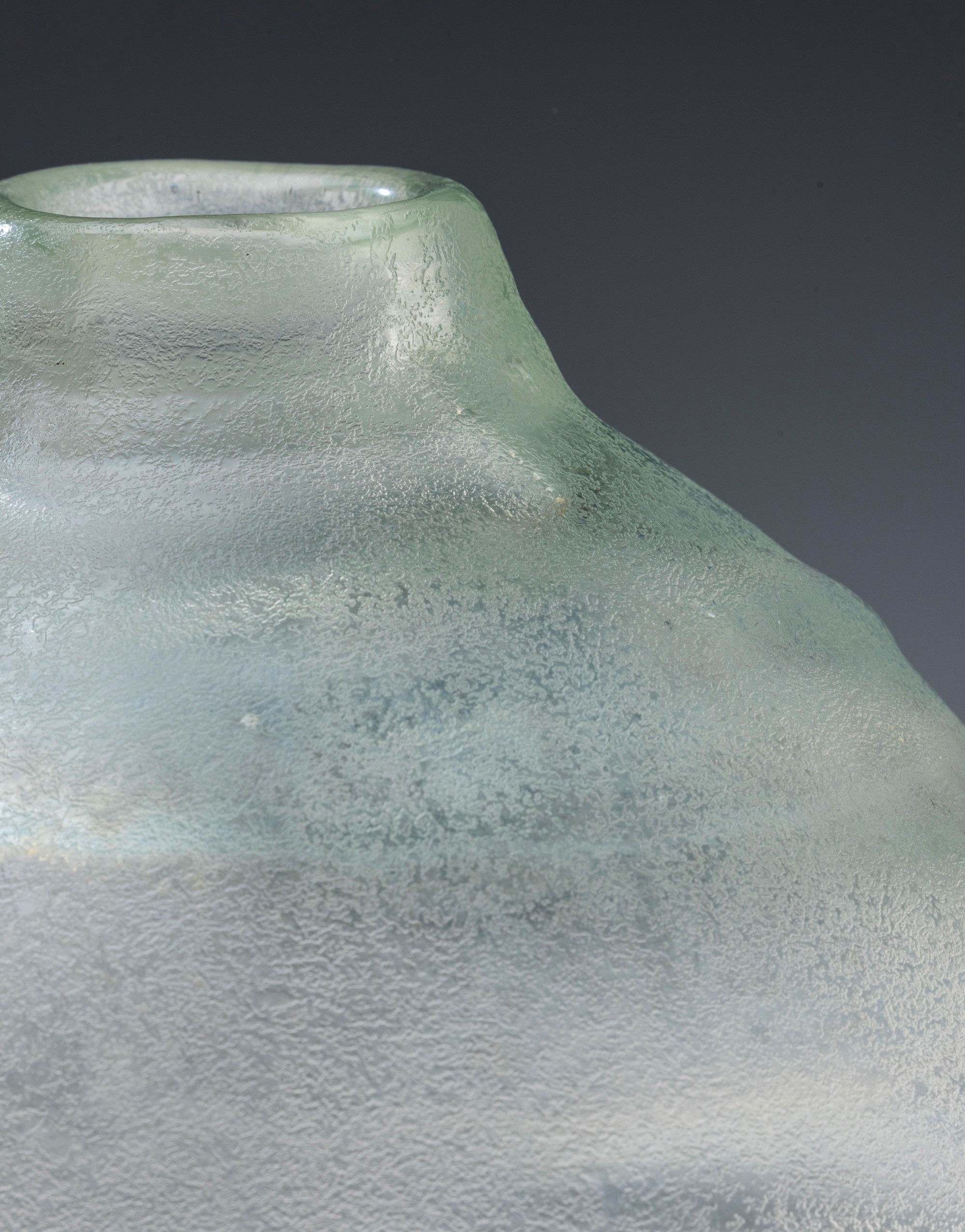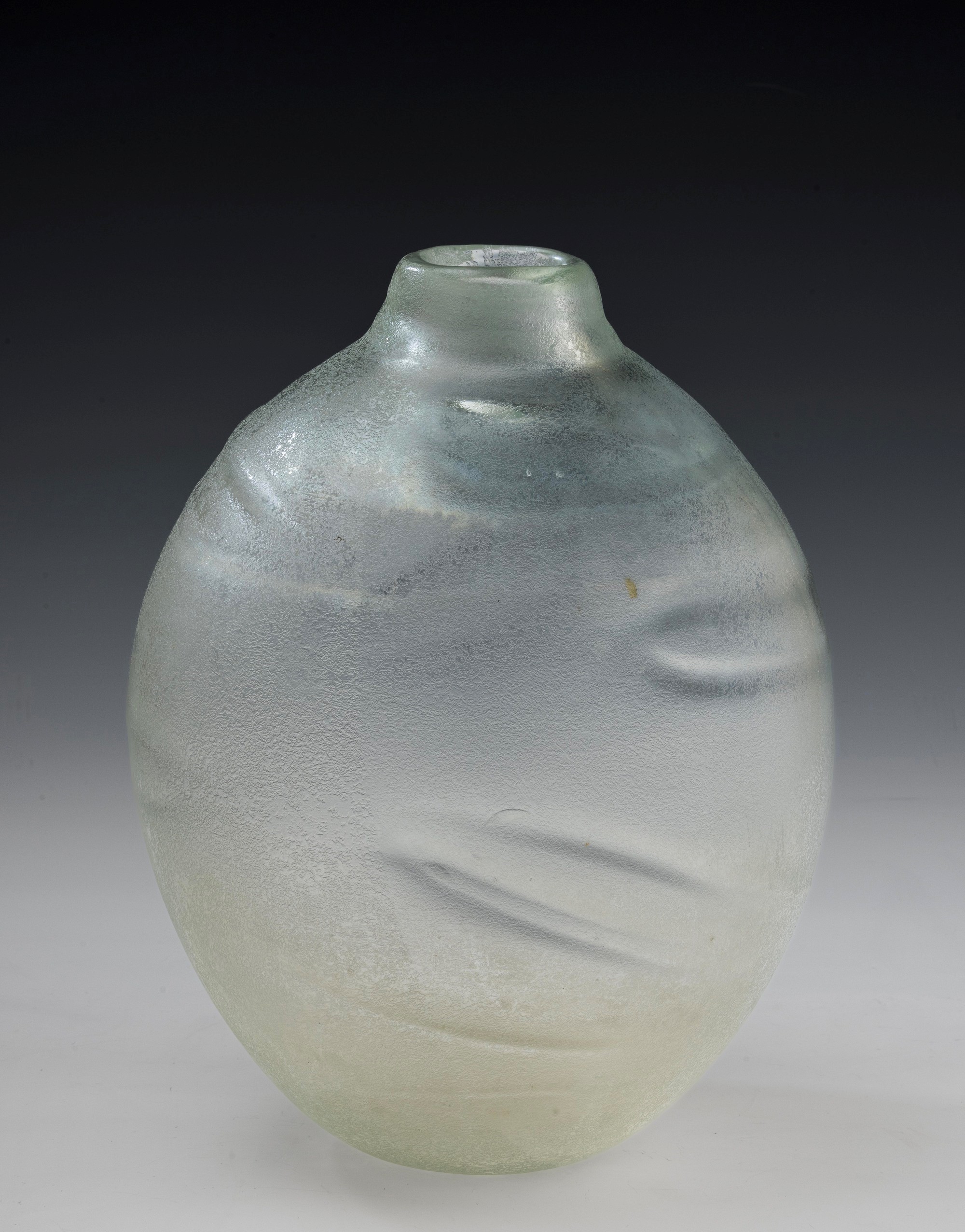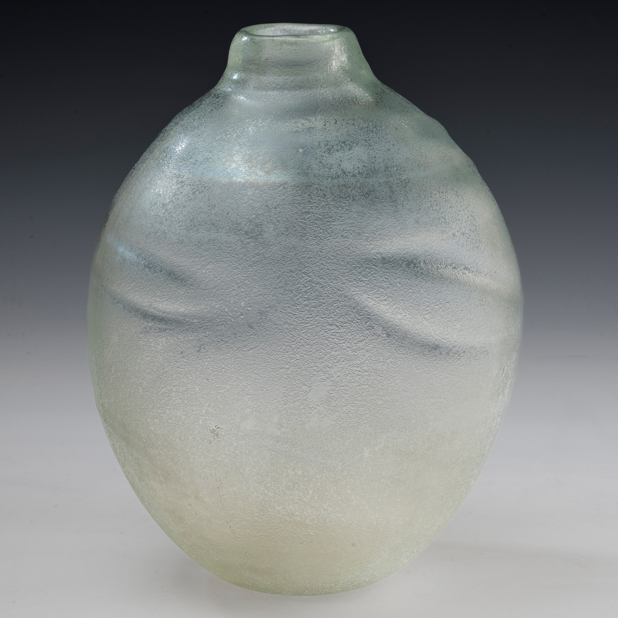 Grande vaso serie Corrosi decorato da rilievi con superficie interamente lavorata all’acido e iridata.