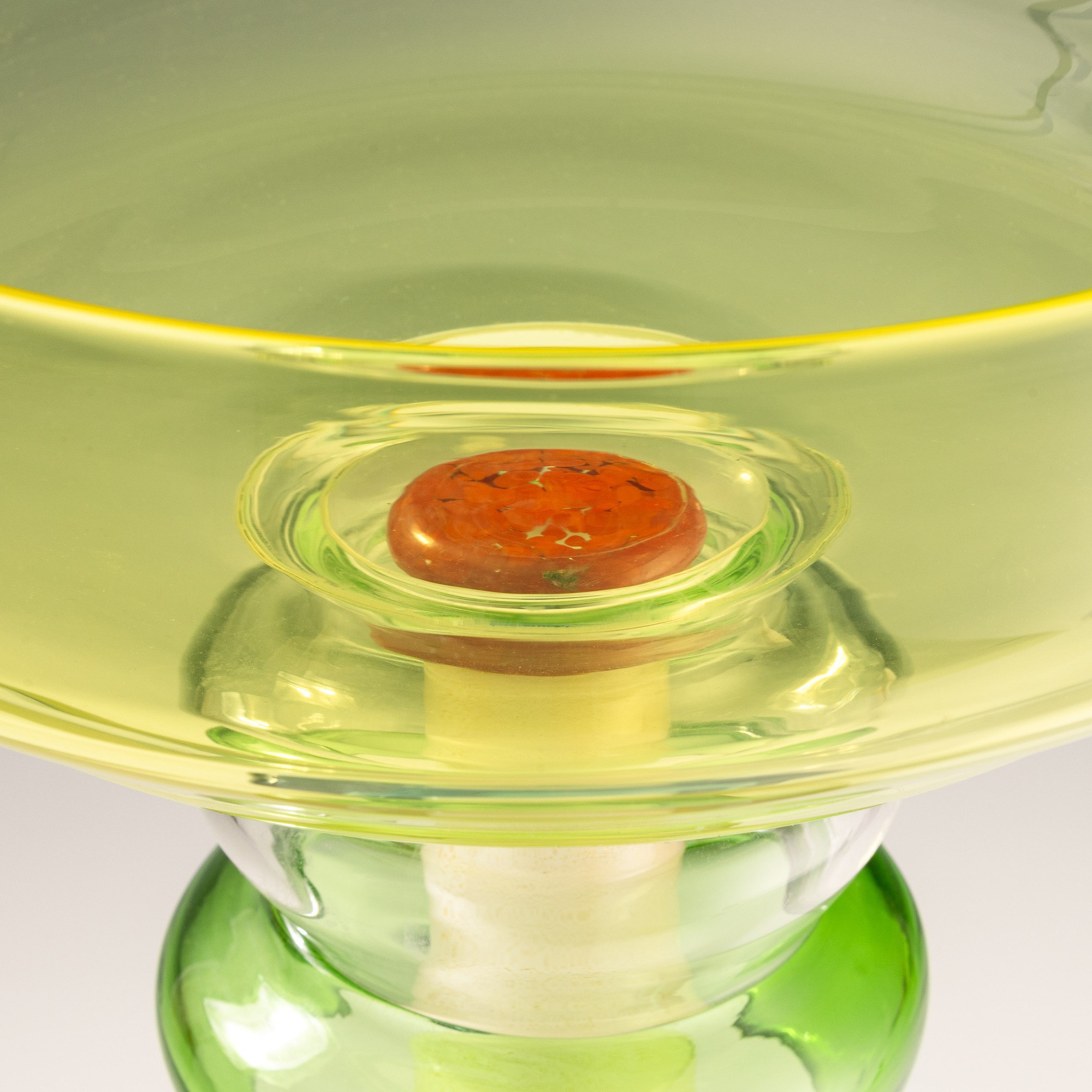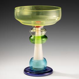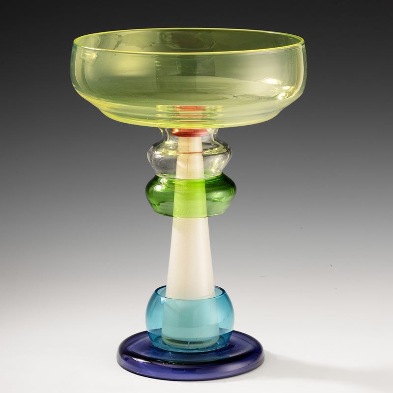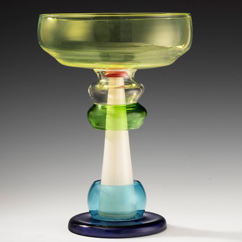 Coppa Niobe in vetro soffiato policromo e inclusione di foglia oro.