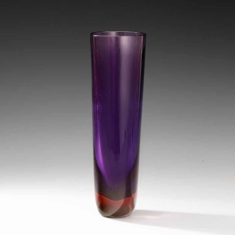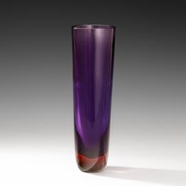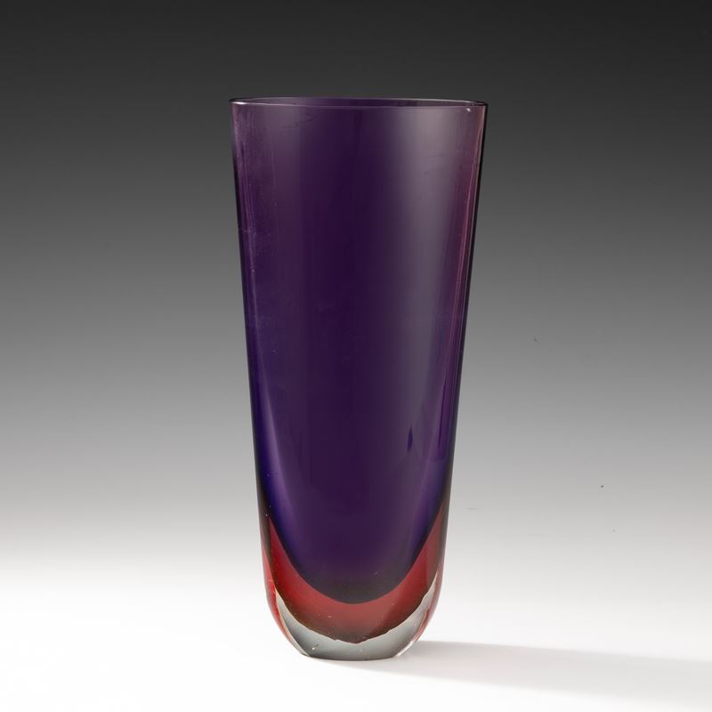 Grande vaso a sezione ovale in vetro sommerso rosso rubino blu.