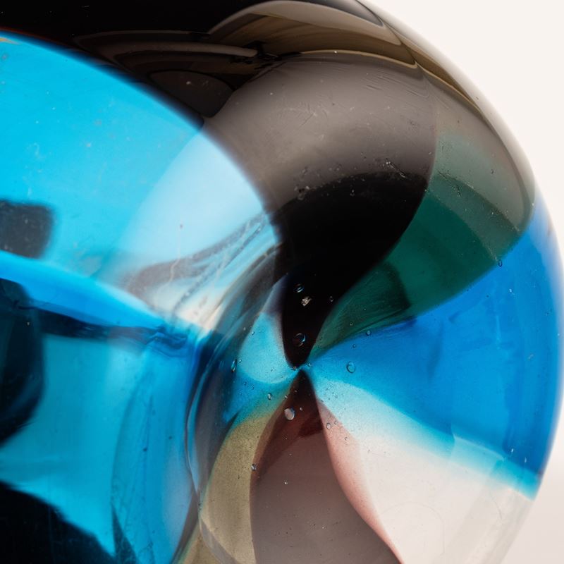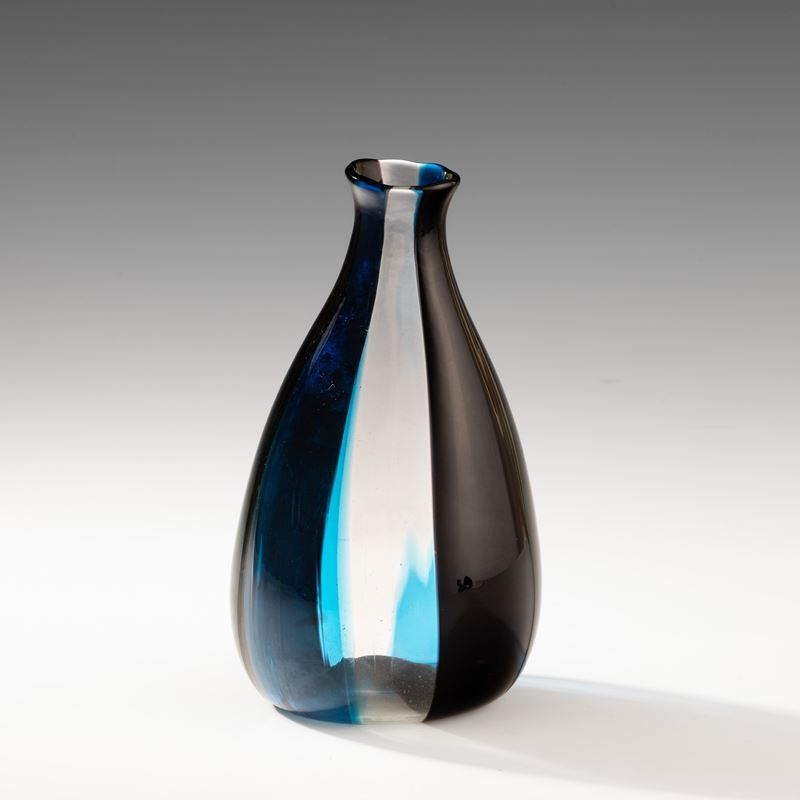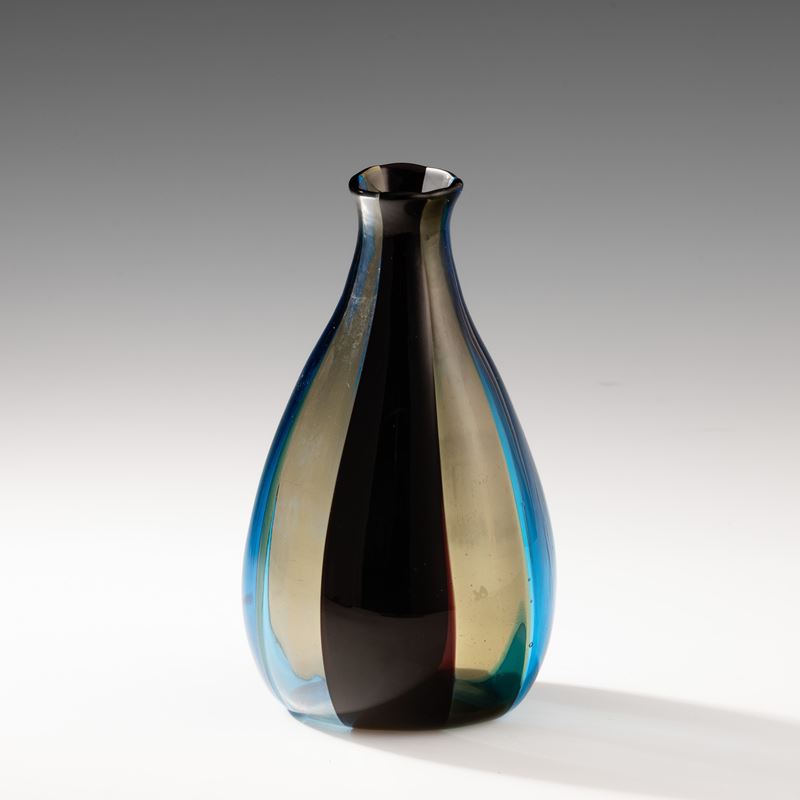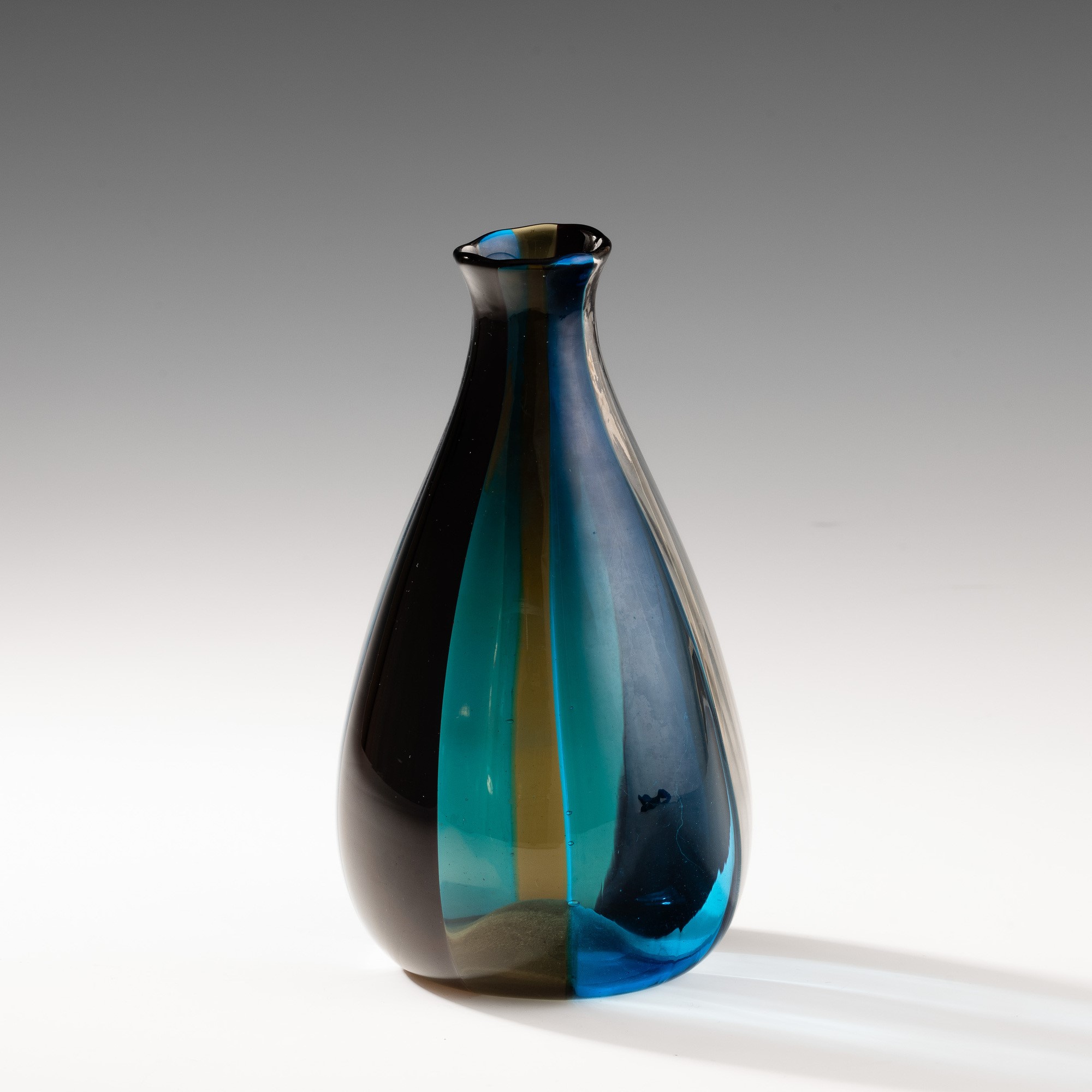 Vaso a goccia serie Spicchi in vetro soffiato con decoro di fasce verticali policrome.