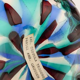 Firma all'acido Venini Murano Italia ed etichetta cartacea della collezione.