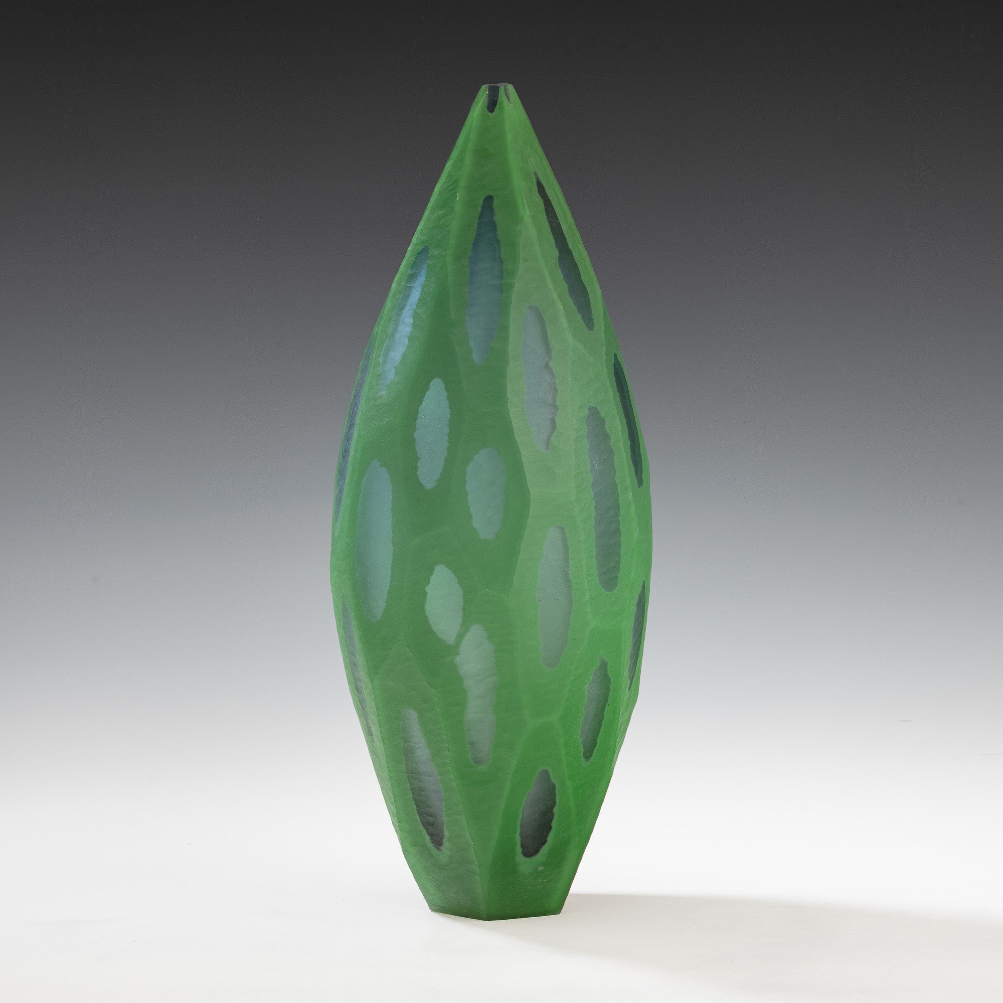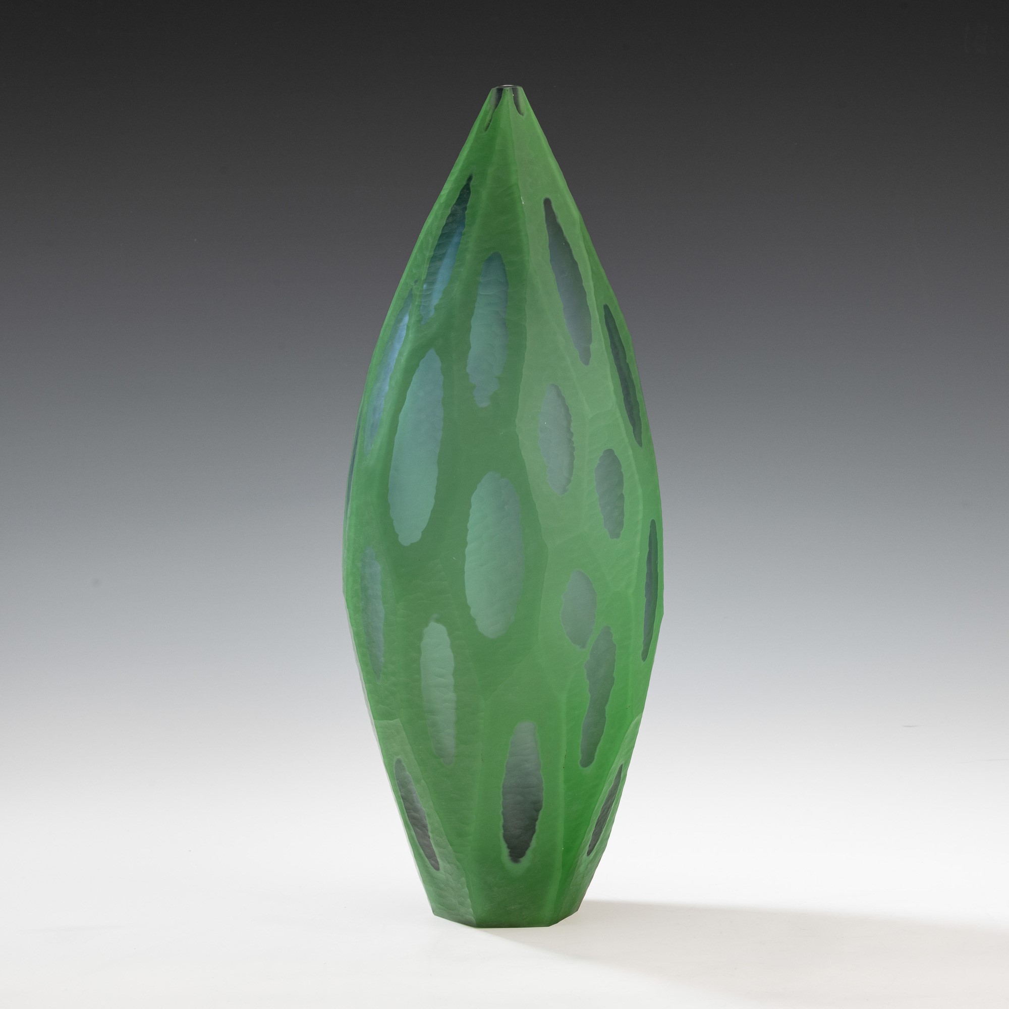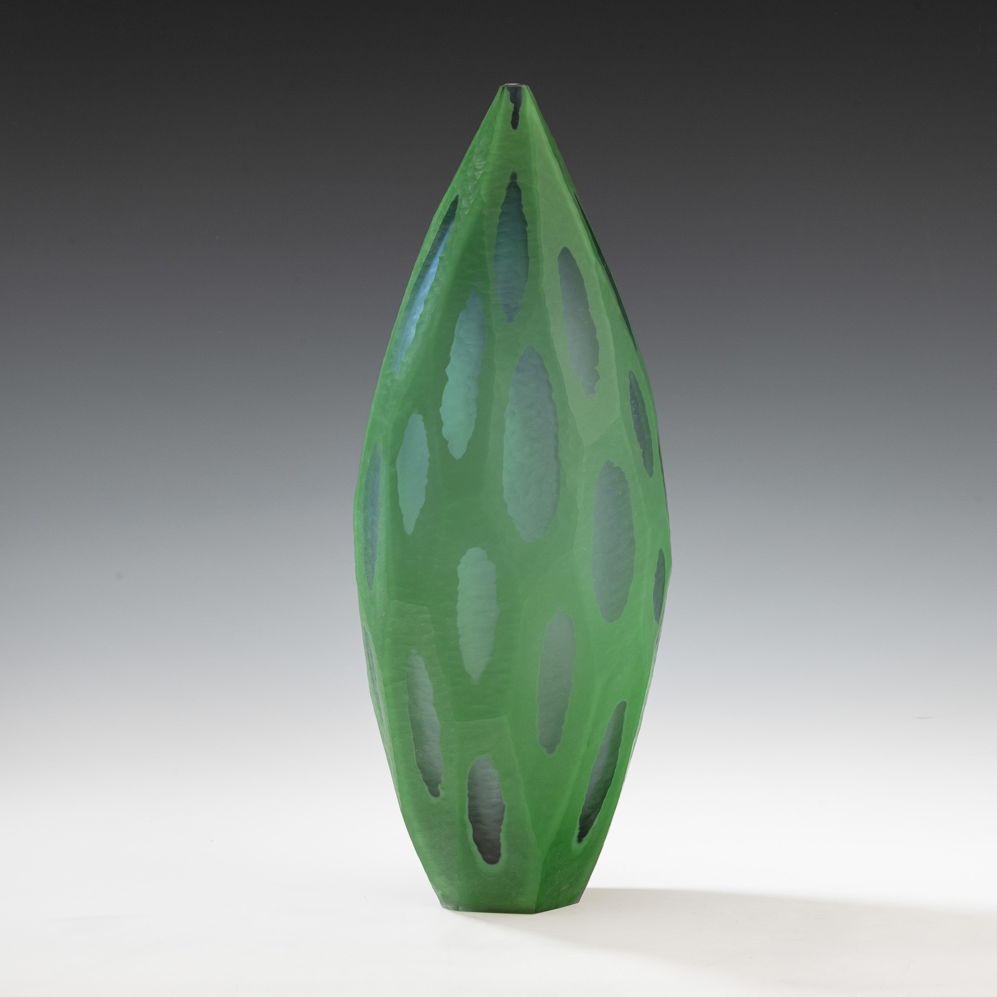 Vaso monofiore serie Nonfoux in vetro soffiato a cammeo con superficie lavorata alla mola.