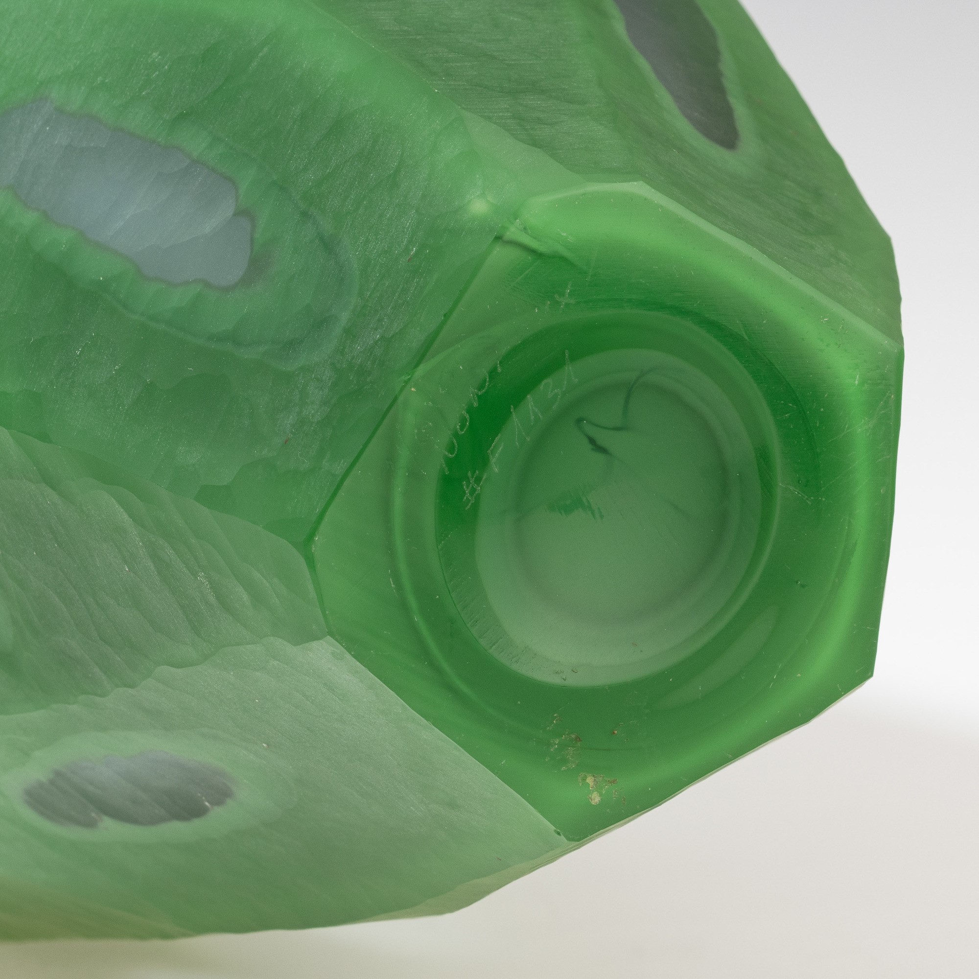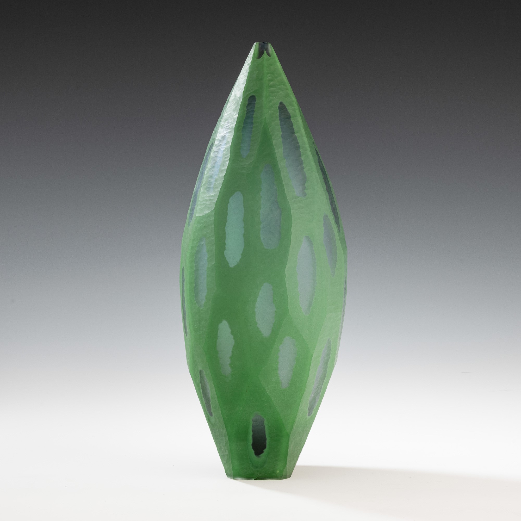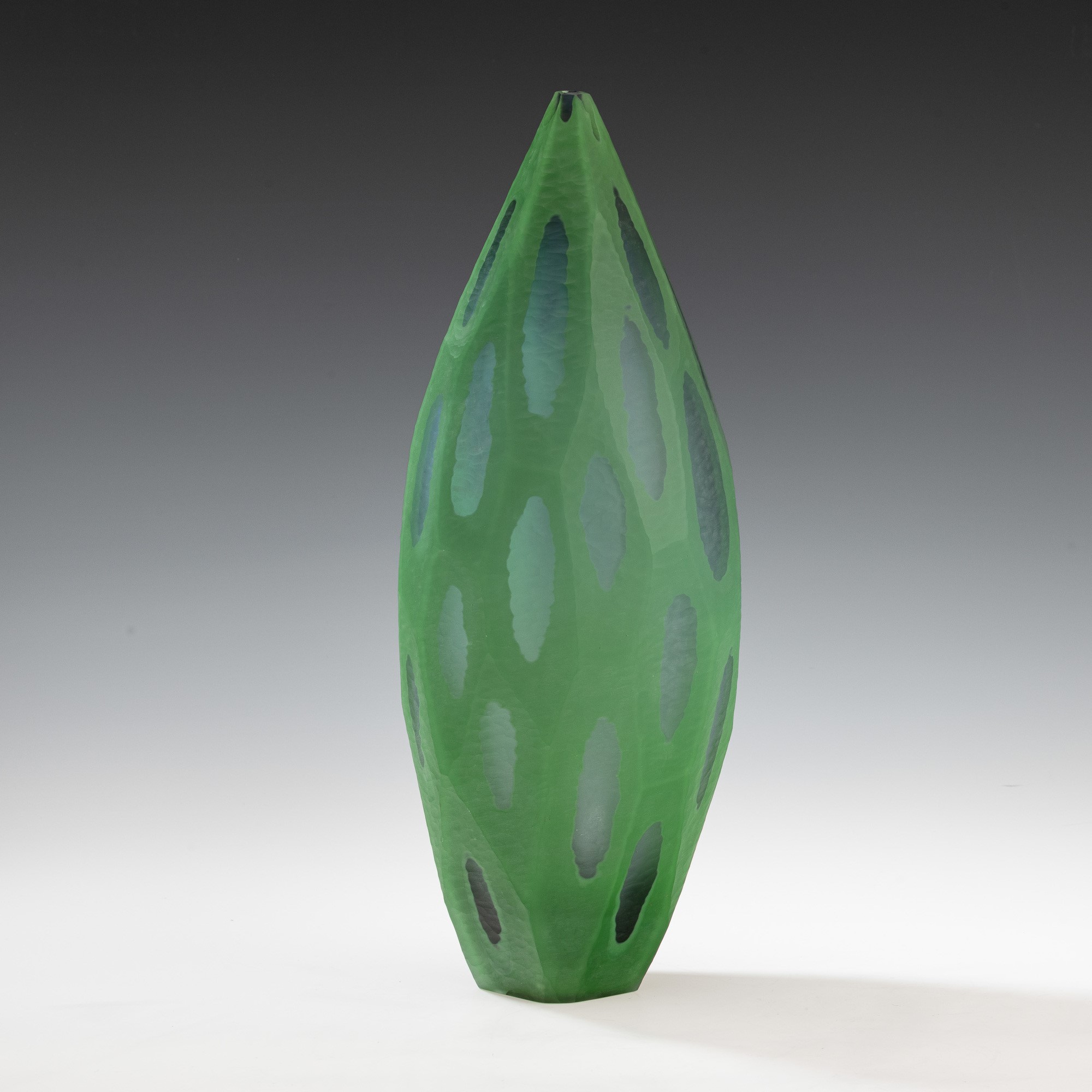 Vaso monofiore serie Nonfoux in vetro soffiato a cammeo con superficie lavorata alla mola.