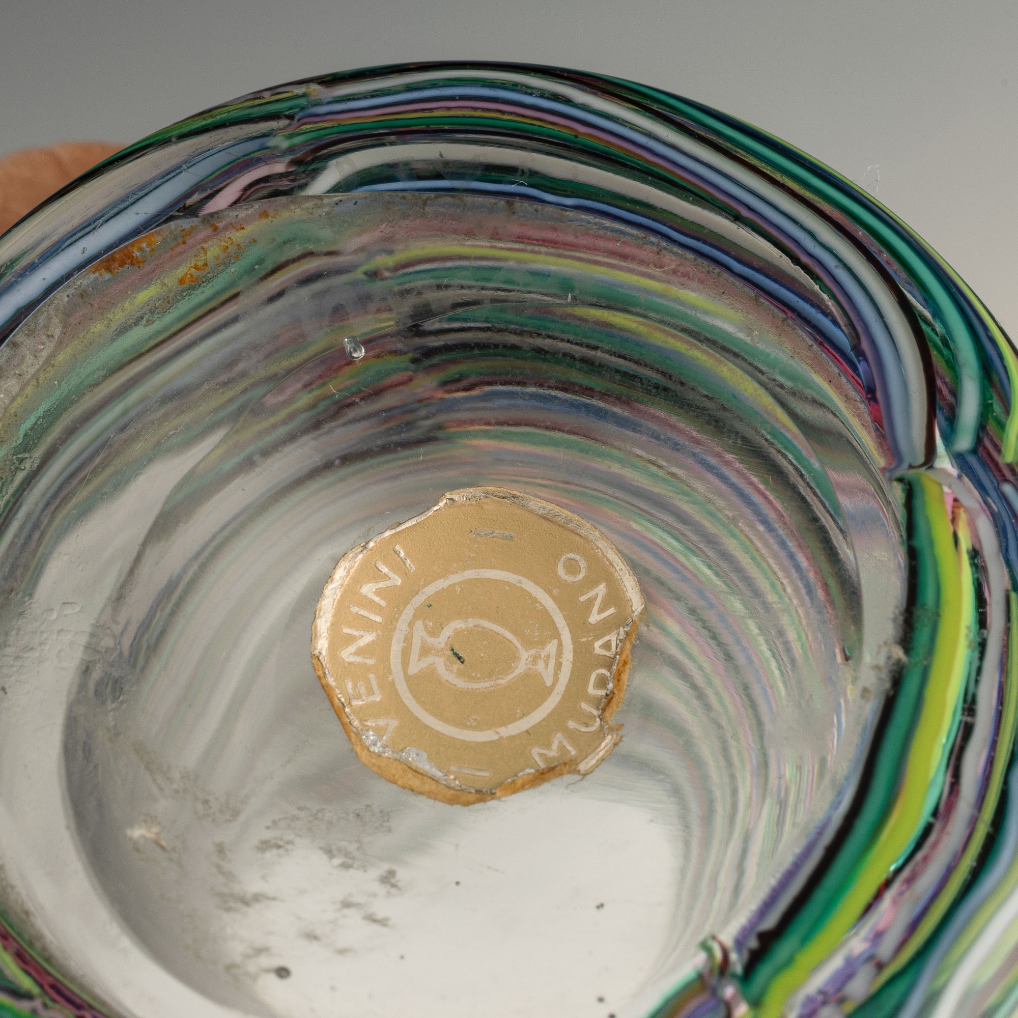 Firma all'acido Venini Murano Italia e vecchia etichetta.