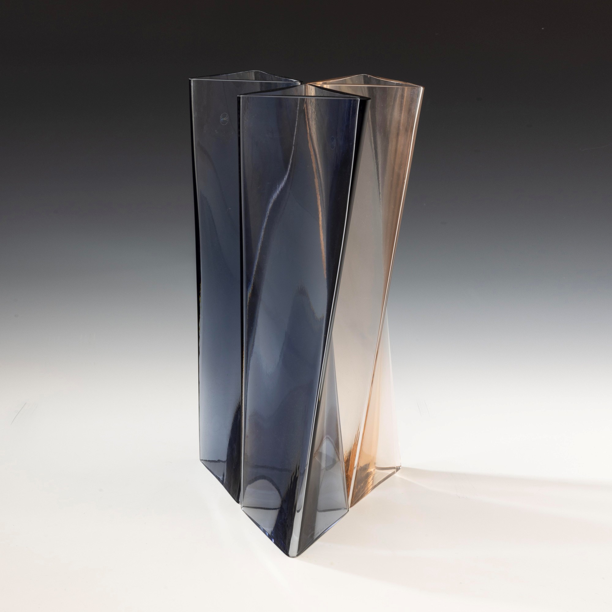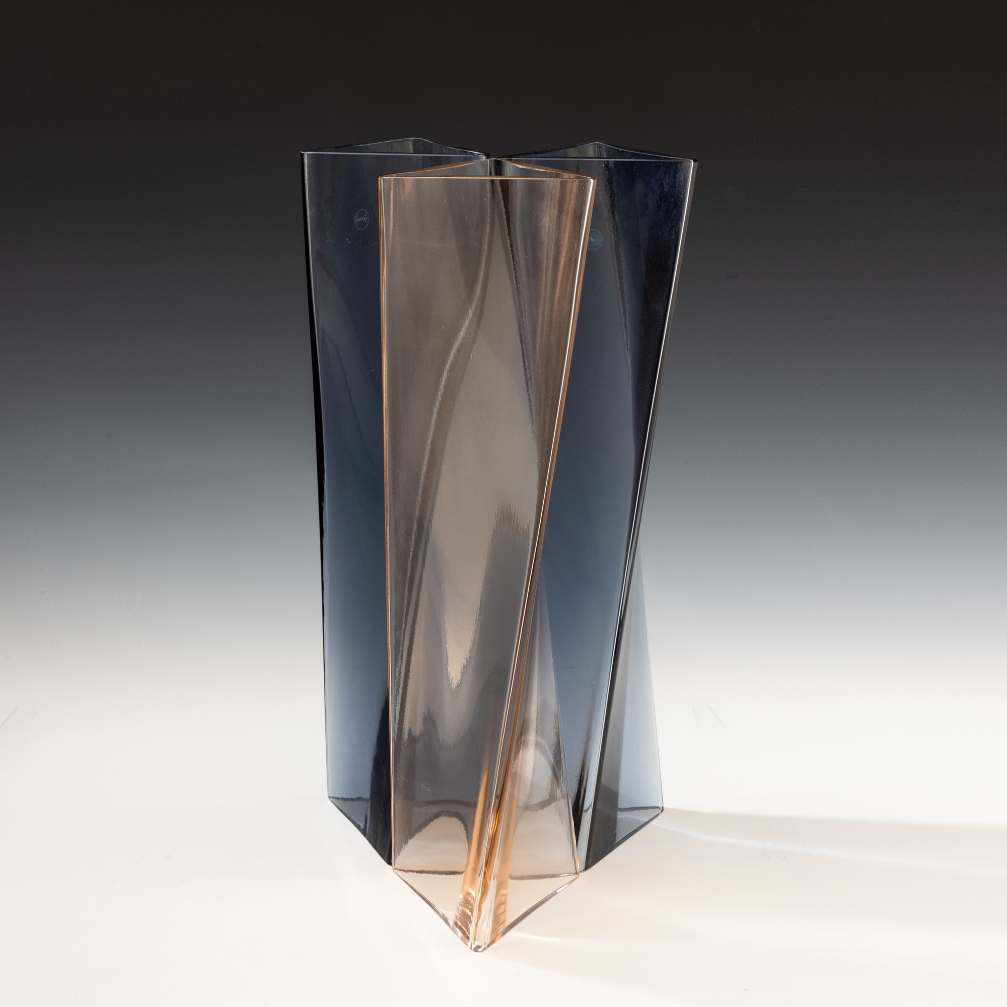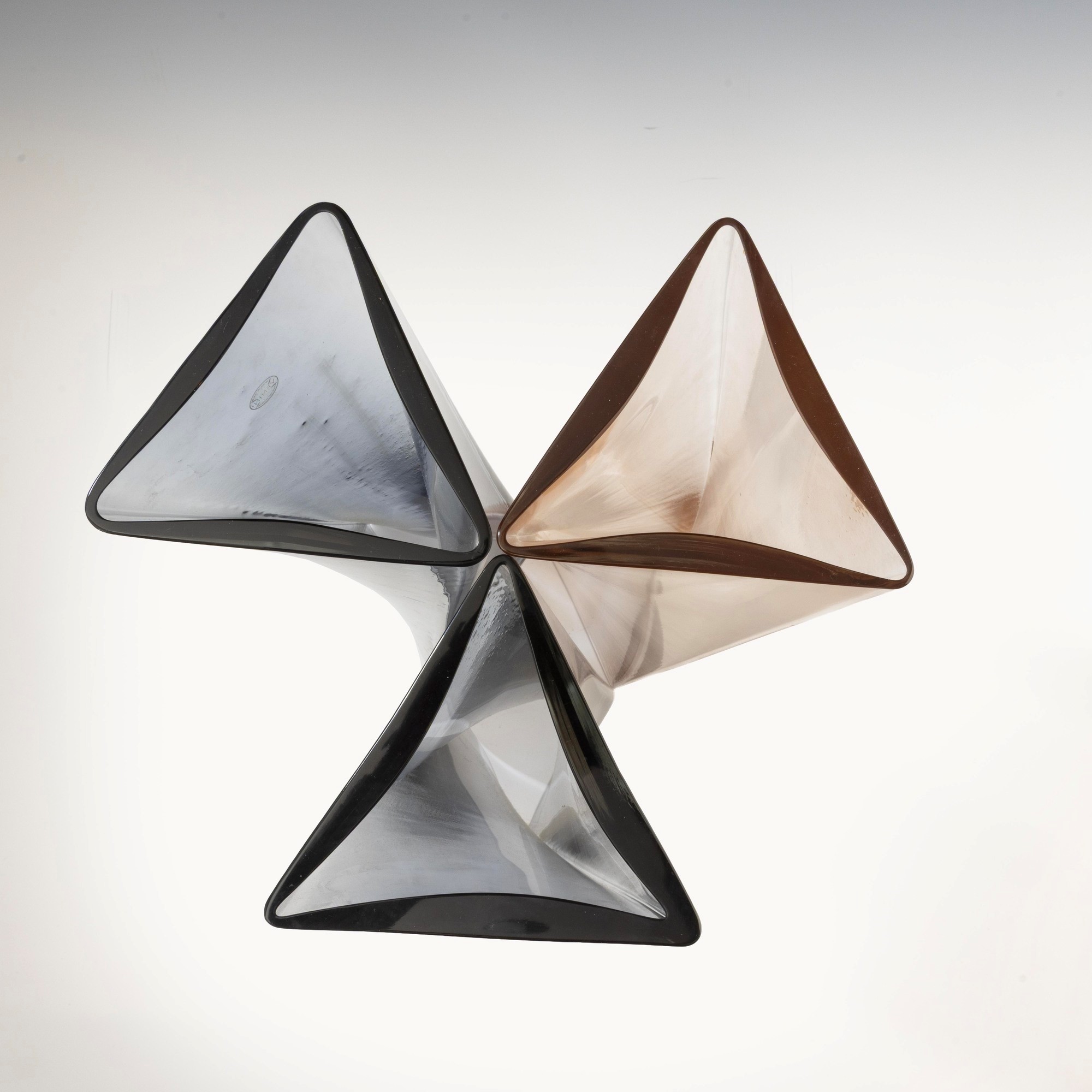 Tre prove d'artista per la serie Ando in vetro soffiato a sezione triangolare senza fondo nei colori fumè e rosato.