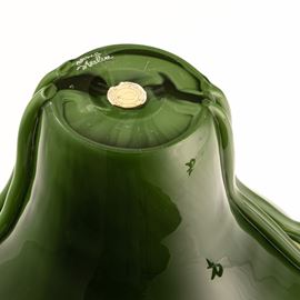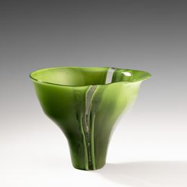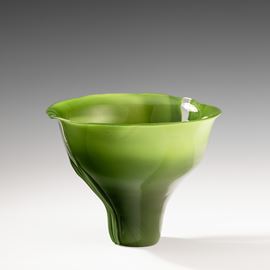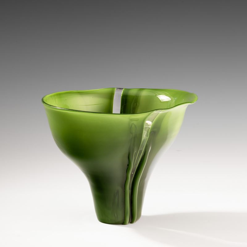 Coppa serie Scolpiti in vetro opaco verde antico con fasce verticali trasparenti.