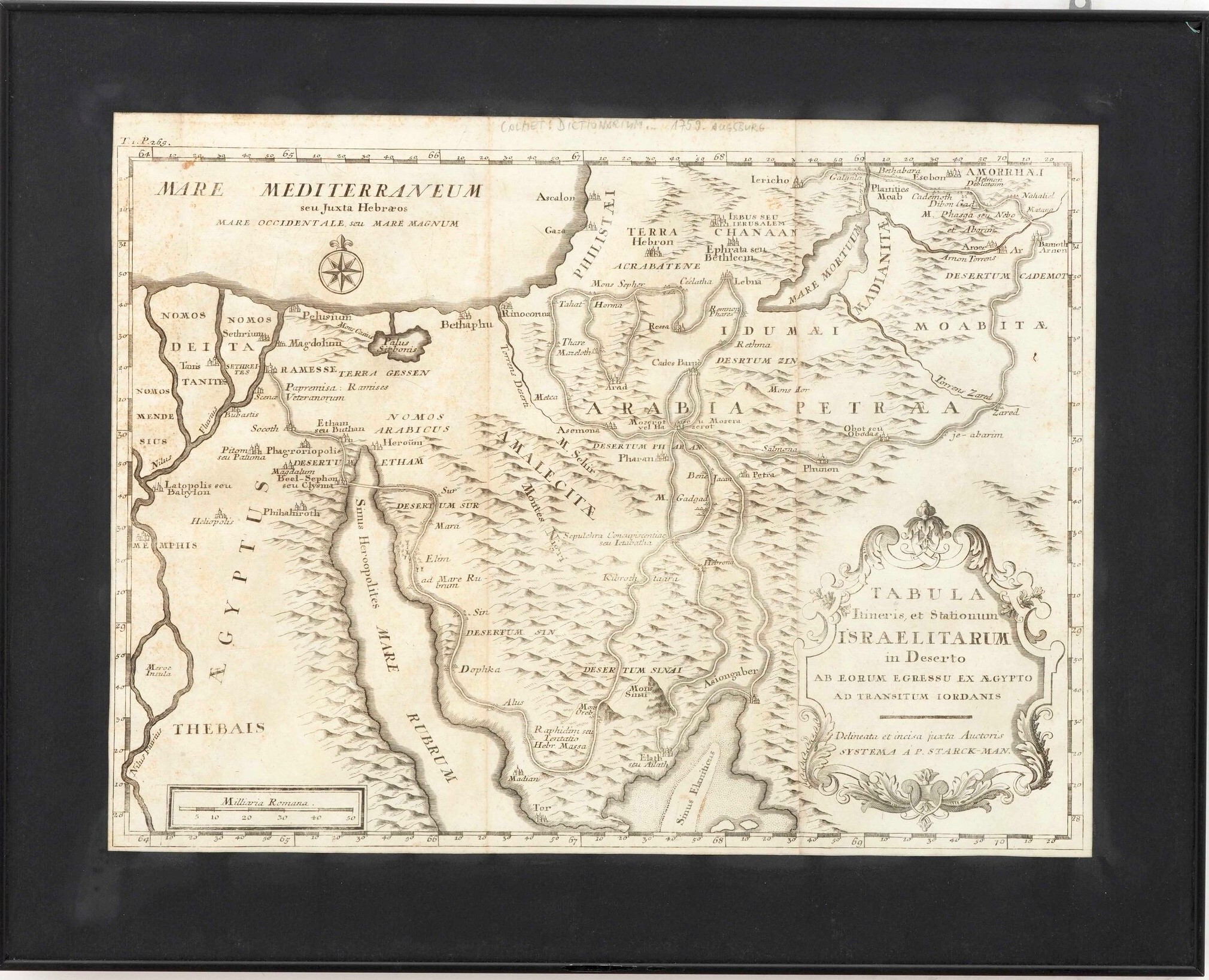 Calmet, Antonie Augustin (1672-1757) Tabula itineris, et statiorum israelitarum in deserto ab eourm egressu ex aegypto ad transitum iordanis