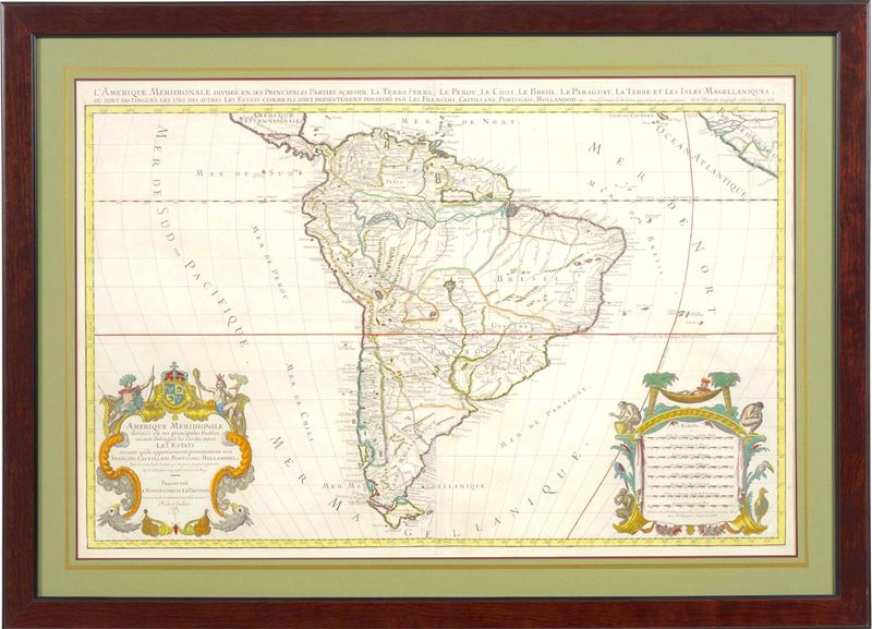 Incisione parzialmente colorata ad acquarello, pubblicata per la prima volta a Parigi nel 1696 circa. Dimensioni cm 91x61. Entro cornice