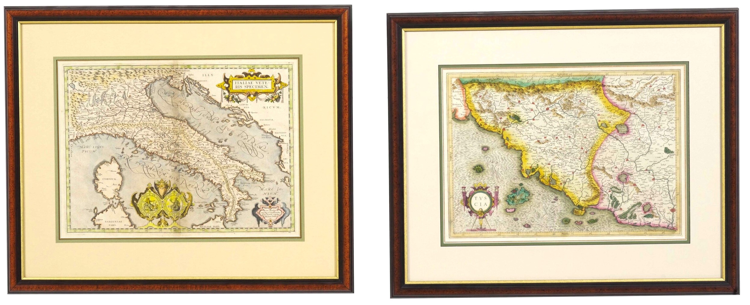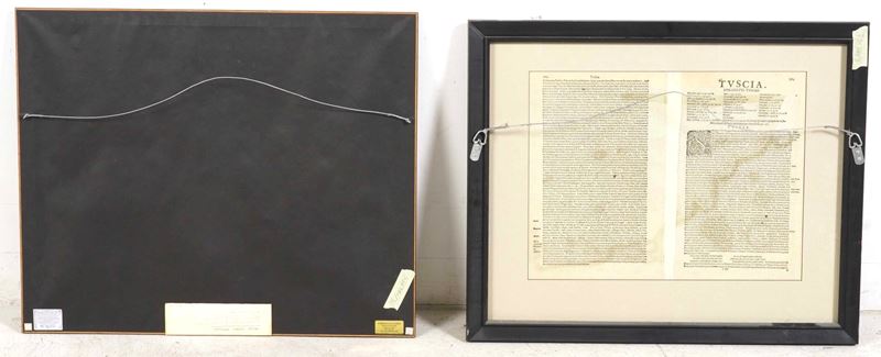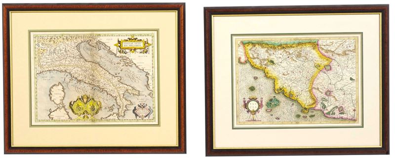 Incisione parzialmente colorata ad acquarello tratta dal "Atlas sive Cosmographicae Meditationes de Fabrica Mundi et Fabricati Figura", pubblicato a partire dal 1585. Dimensioni: cm 37x47. Entro cornice;