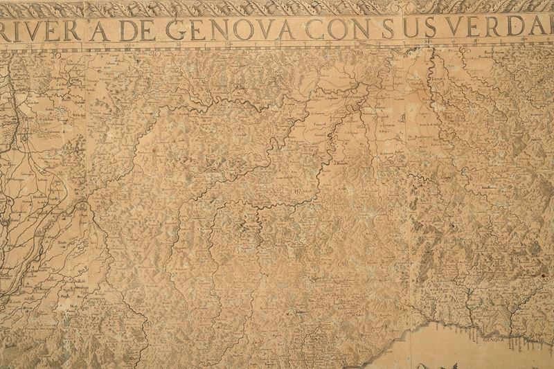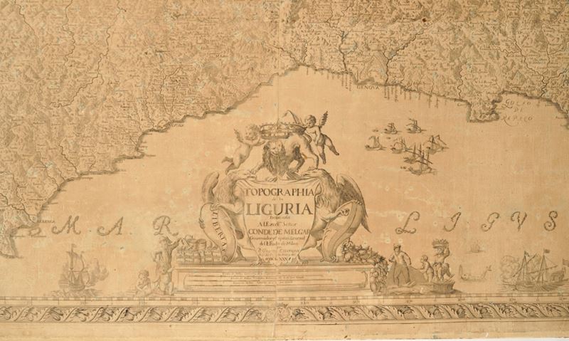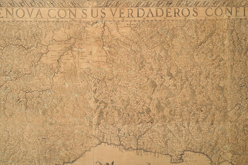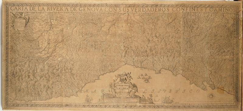 Grande e magnifica carta geografica della Liguria, considerata da molti la più celebre e famosa tra quelle realizzate, divisa, come di consueto, in otto riquadri e applicata su supporto in tela.