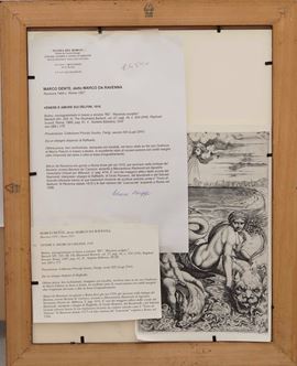 Incisione a bulino monogrammato in basso a sinistra. Bellissima prova ben inchiostrata nel III/III. Soggetto tratto da un disegno disperso di Raffaello Sanzio. Timbro in basso a sinistra riconducibile alla collezione dei principi Soutzo, Parigi XIX secolo. Entro cornice