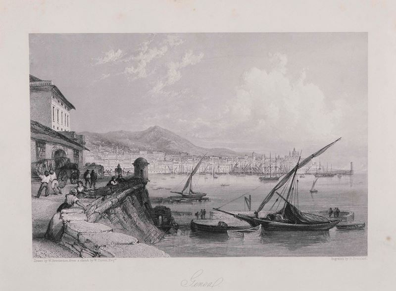 Genova-Vedute - R. Brandard, Veduta di Genova, cm 23x33,3; - Porta vecchia della lanterna, illustrazione tratta presumibilmente [..]