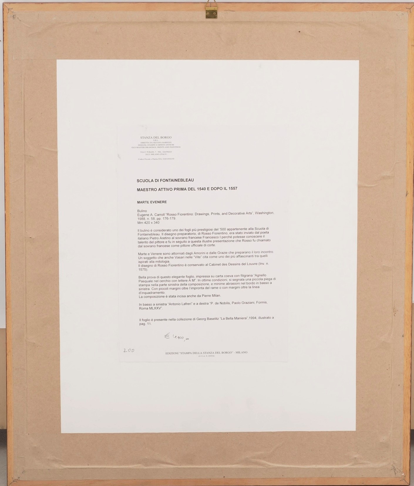 Dimensioni: foglio cm 42x34; cornice cm 50,5x60,5