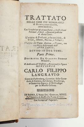 Carlo Filippo, Langravio, Conte di Fustemberg Trattato delle cose più memorabili di Roma.. In Roma, per Agostino de Rossi, [..]