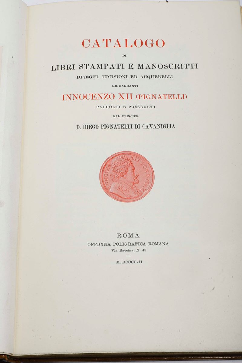 Catalogo di Libri...riguardanti Innocenzo XII (Pignatelli) raccolti e posseduti dal Principe D. Diego Pignatelli di Cavaniglia [..]