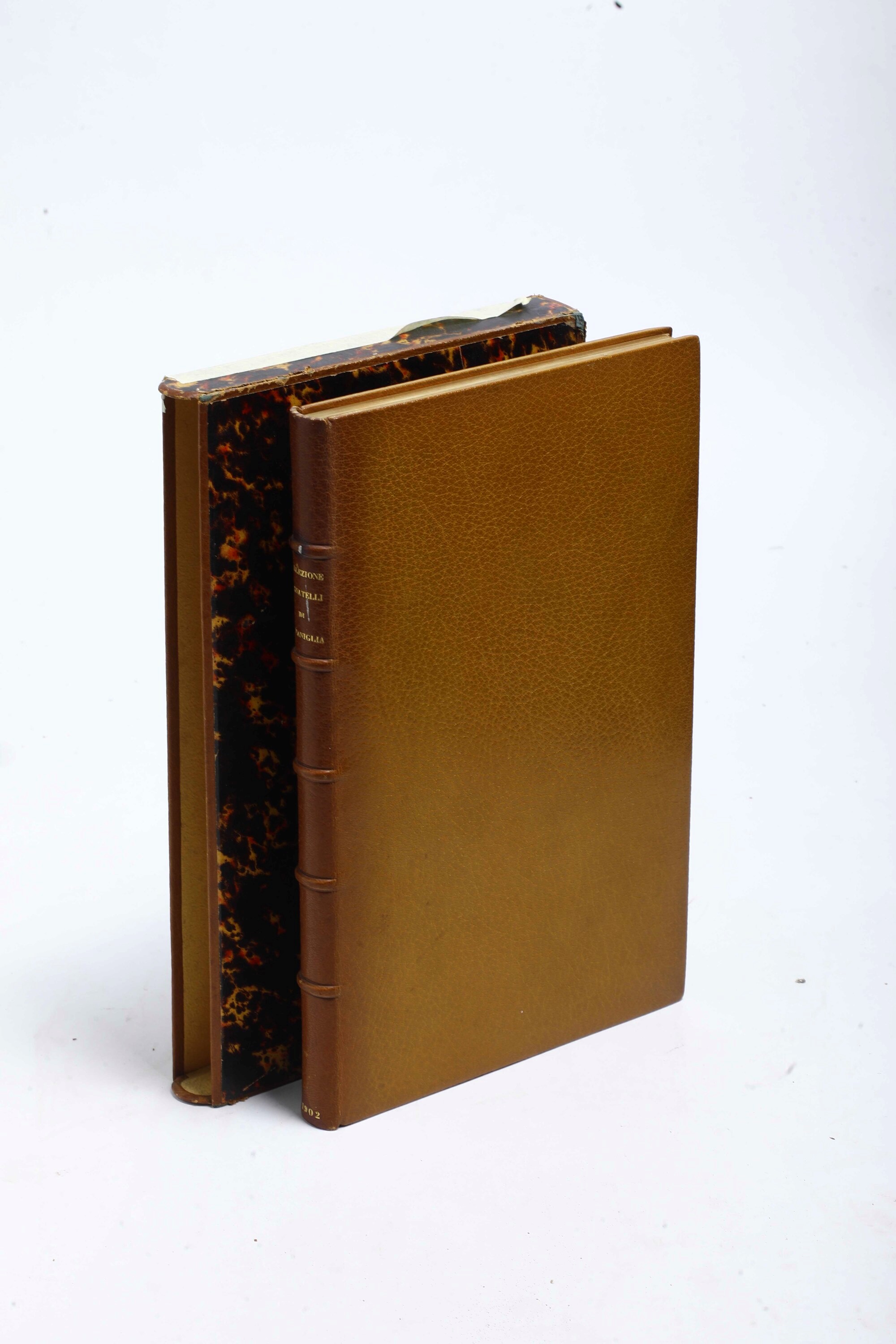 In-folio. Rilegatura in piena pelle moderna con contropiatti in marocchino rosso goffrato in oro, tagli dorati, custodia in cartone marmorizzato (usure alla custodia). Esemplare 75 di 150 di questo interessante catalogo librario. Ottimo esemplare, fresco e marginoso