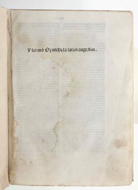 De Hippona, Augustinus (354-430 d.C.) Plurima opuschula sancti augustini.. Ventijs, per Pelegrinum de pasqualibus de Bononia, [..]