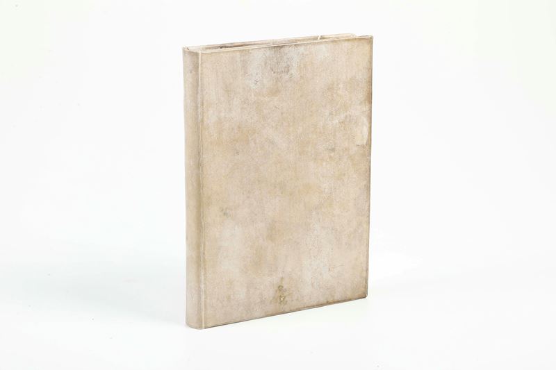 In-4°. (mm 241x173). pi greco2, a-q8, r4 (ultima c. bianca mancante). (2), 131, (1) bianca cc.. Legatura in piena pergamena rigida del secolo XVIII riadattata (piccole mancanze reintegrate, usure). Ex libris manoscritti nei fogli di guardia. Esemplare piuttosto fresco non esente da difetti: alcuni fori di tarlo a spillo, qualche foro o mancanza alle carte, per lo più restaurati, gore piuttosto lievi, prima carta rinforzata
