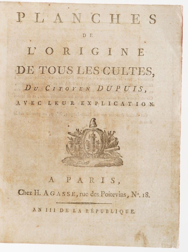 Dupuis, Charles Francois (1742-1809) Planches de l'origine de tous le coultes... Paris, Agasse, An III de la Rèpublique [..]