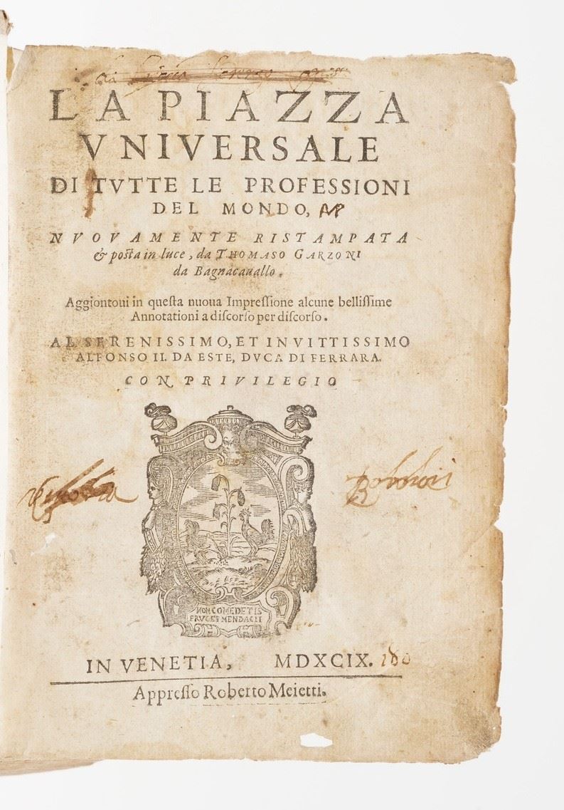 Garzoni, Tommaso (1549-1589) La piazza universale di tutte le professioni...Nuovamente ristampata Venezia, Meietti(in fine [..]