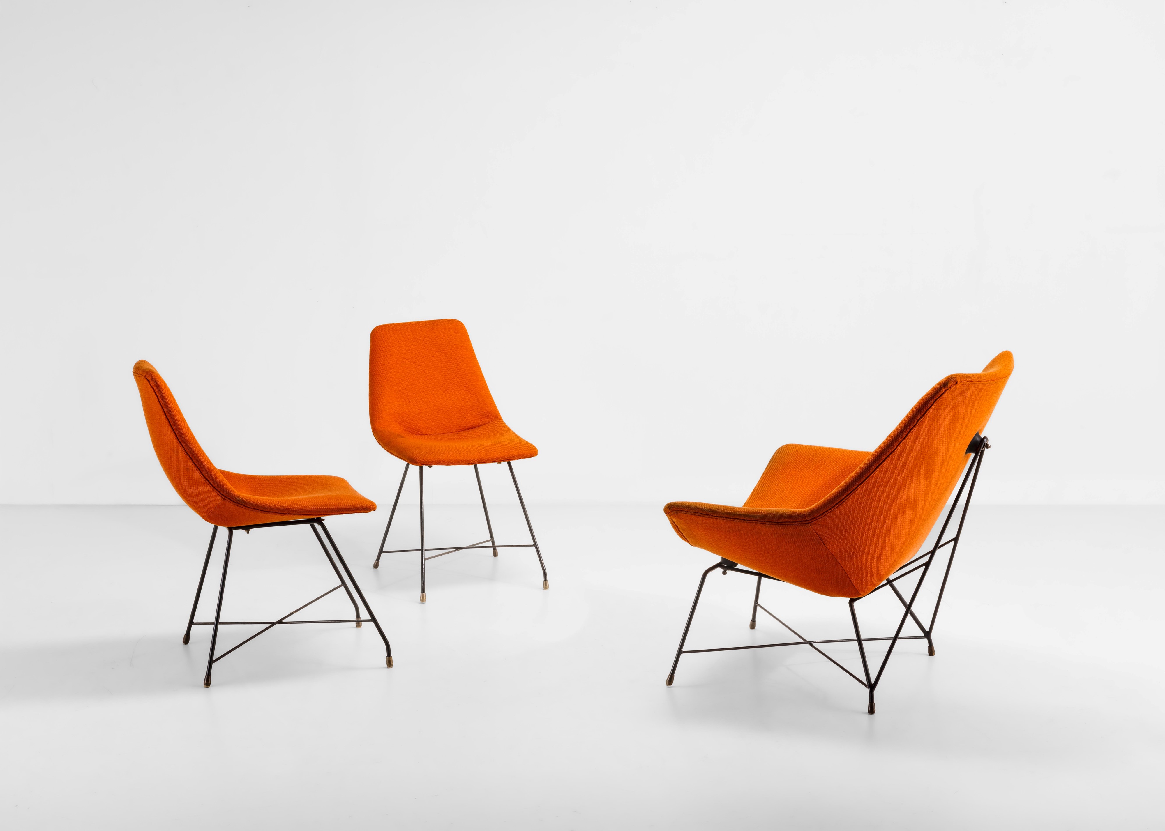 Poltrona mod. Kosmos e due sedie mod. Aster