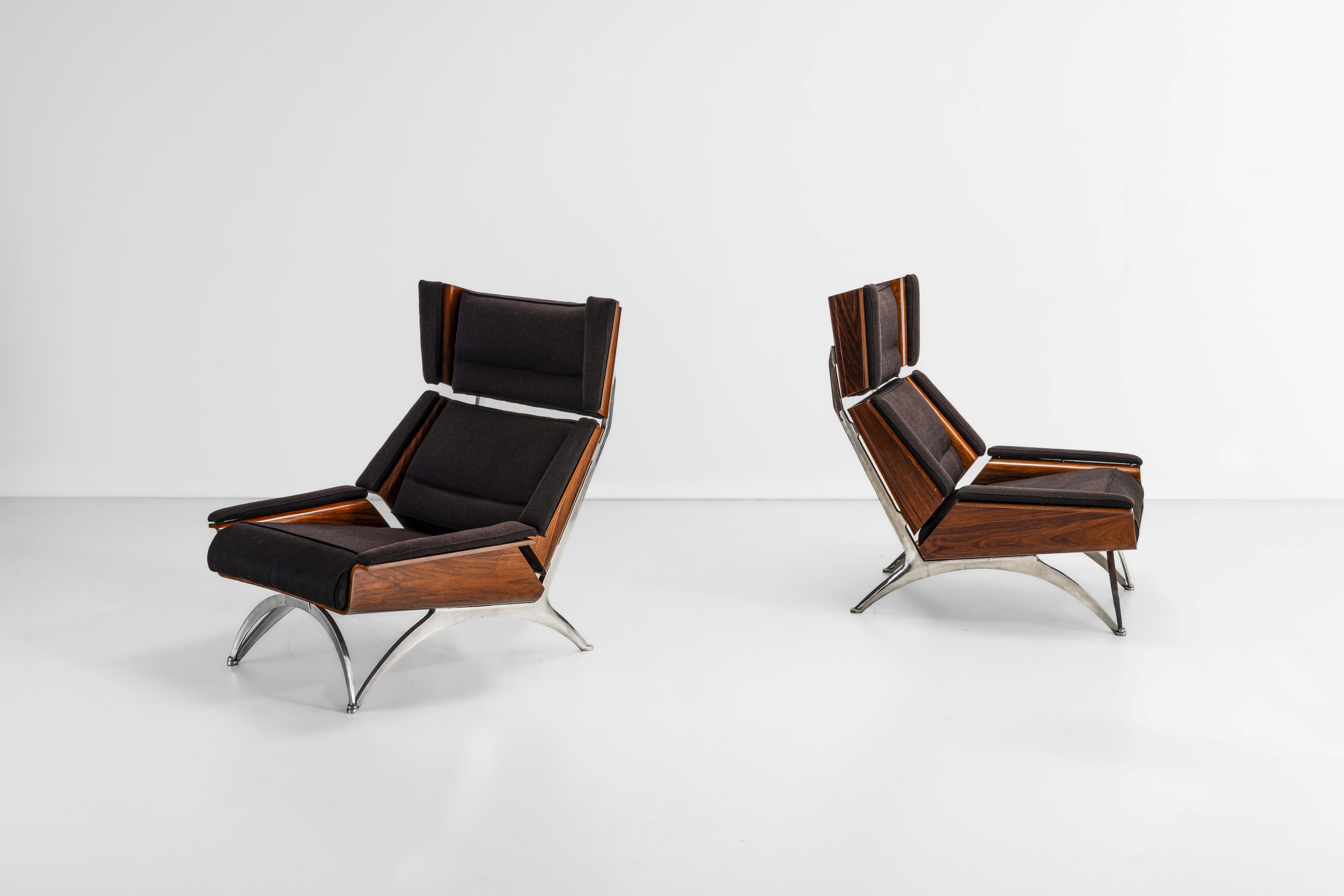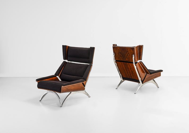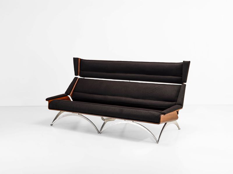 Struttura in legno, rivestimento in tessuto. Dettagli in metallo cromato.