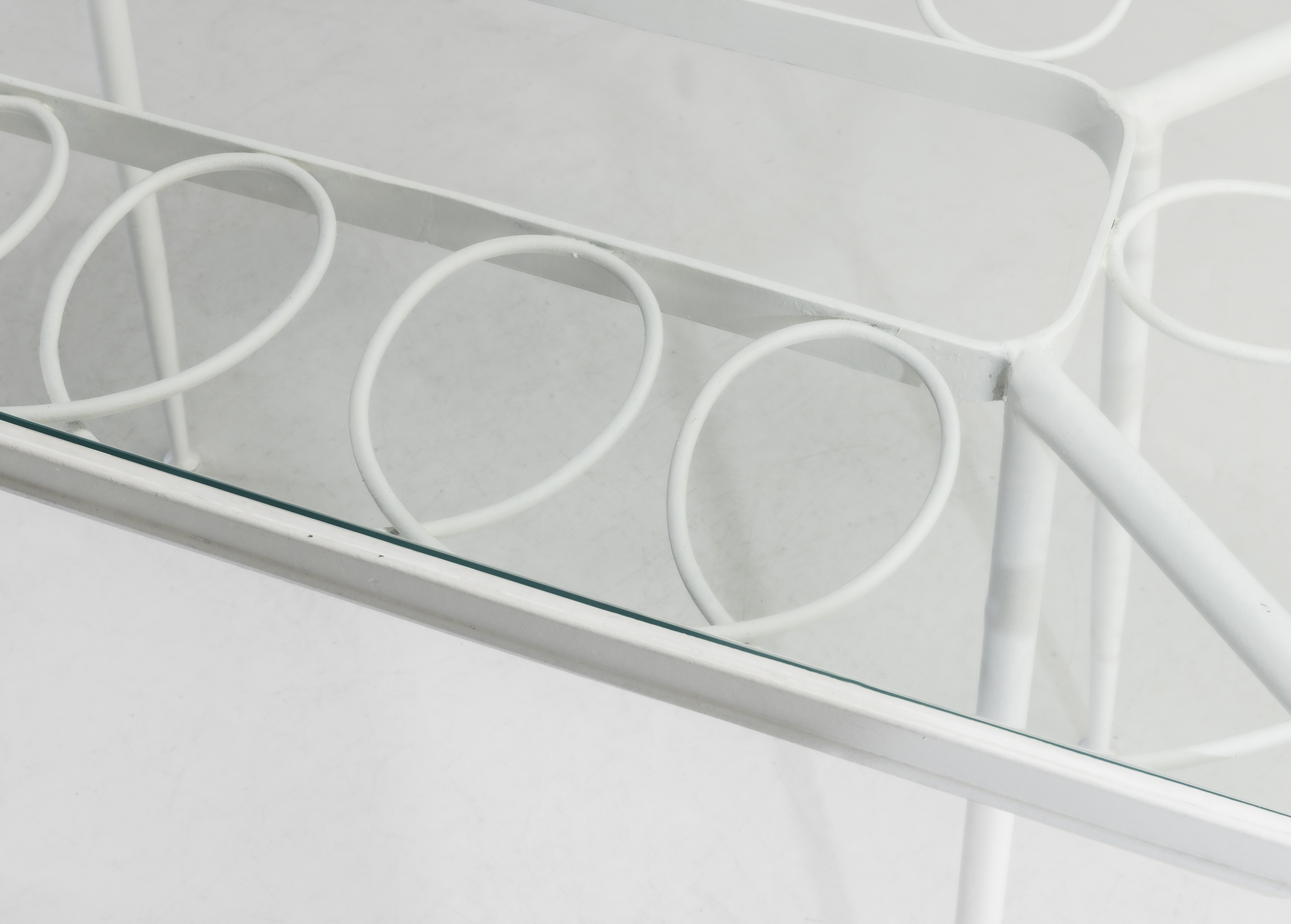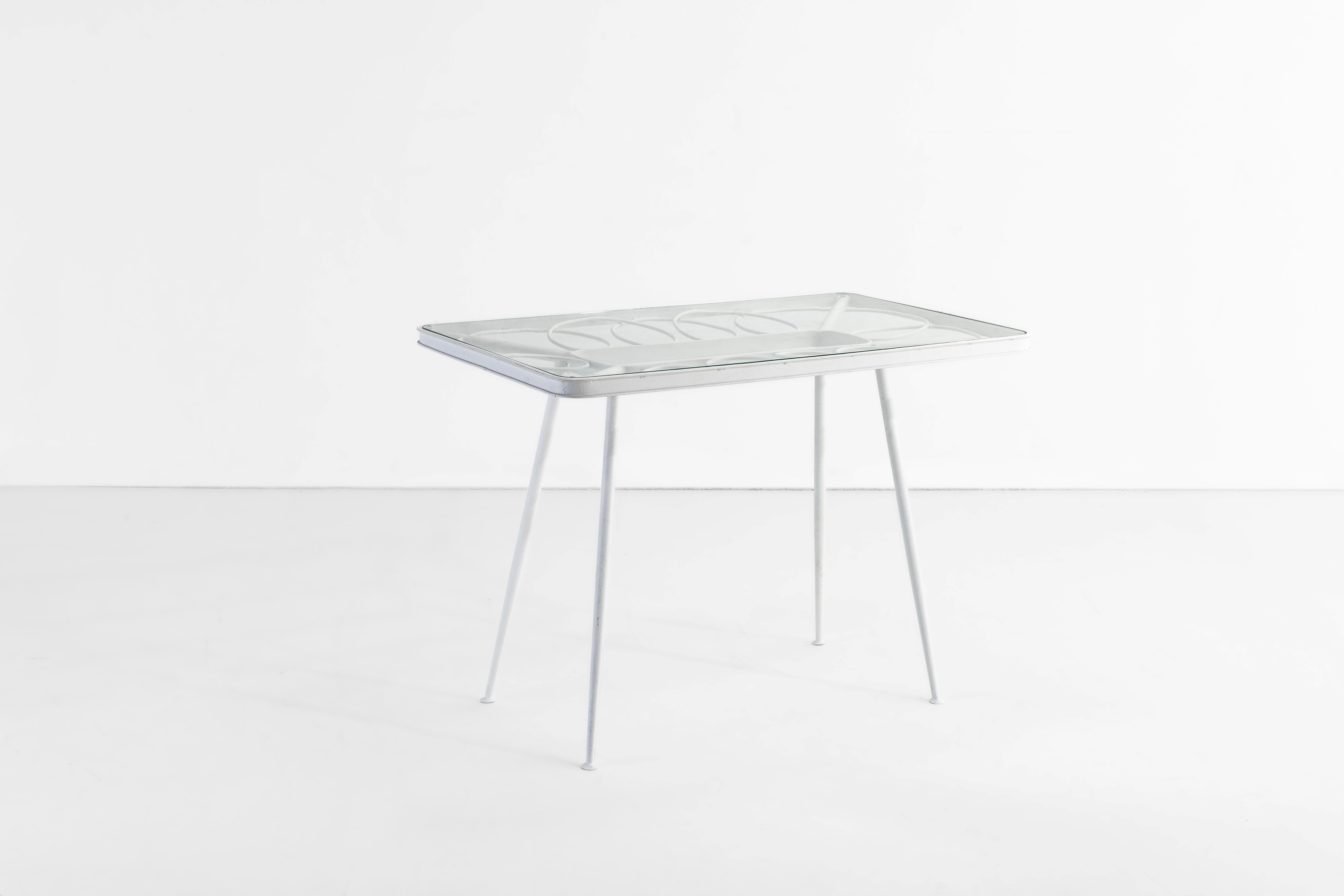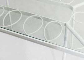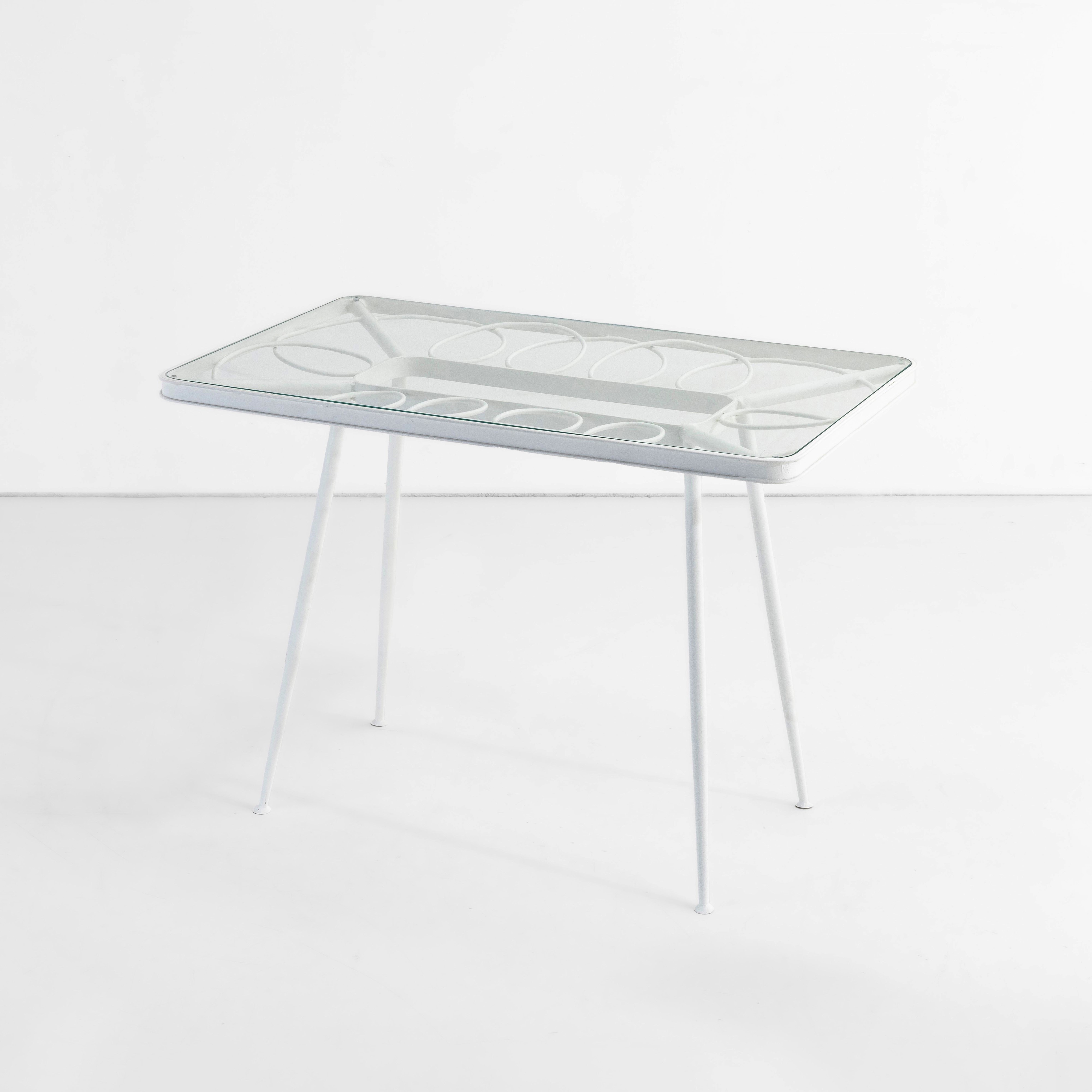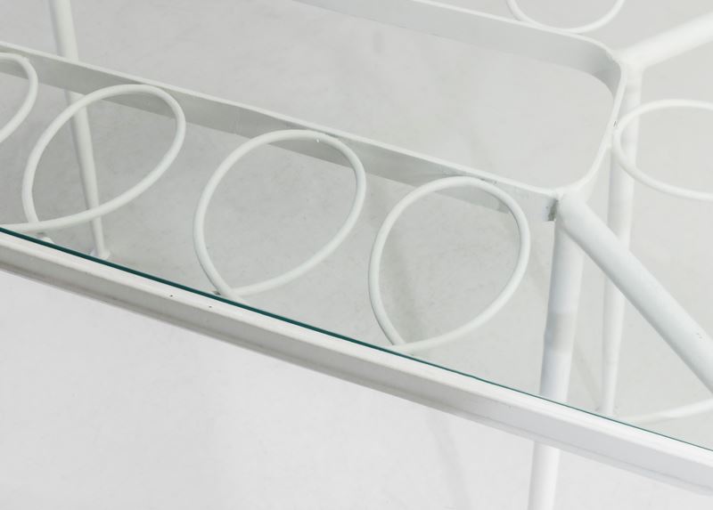 Struttura in tubolare di ferro laccato e piano in vetro.