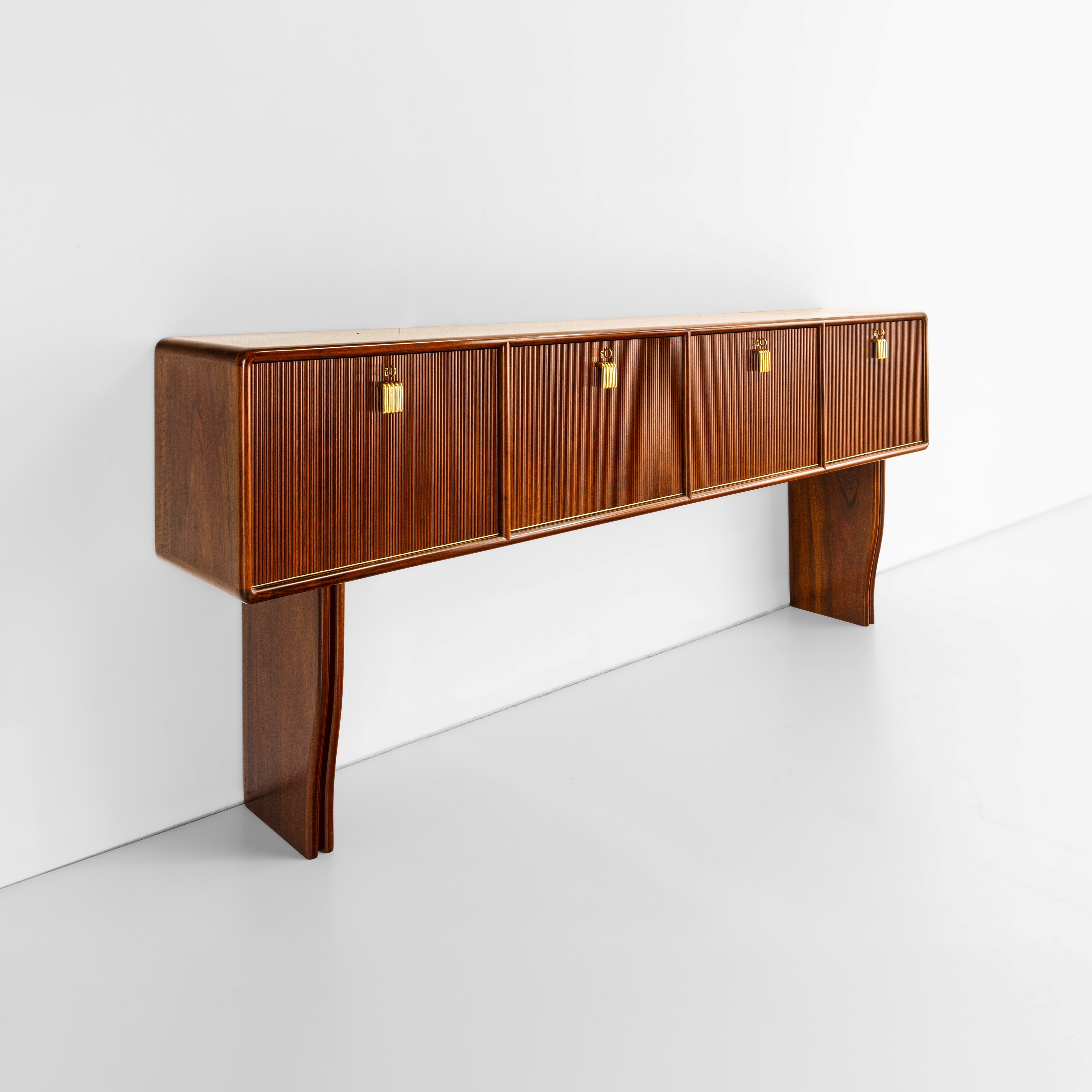 Struttura in legno, ante in legno grissinato e dettagli in ottone.