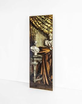Litografia dipinta a mano su legno, decorato come un interno classico.