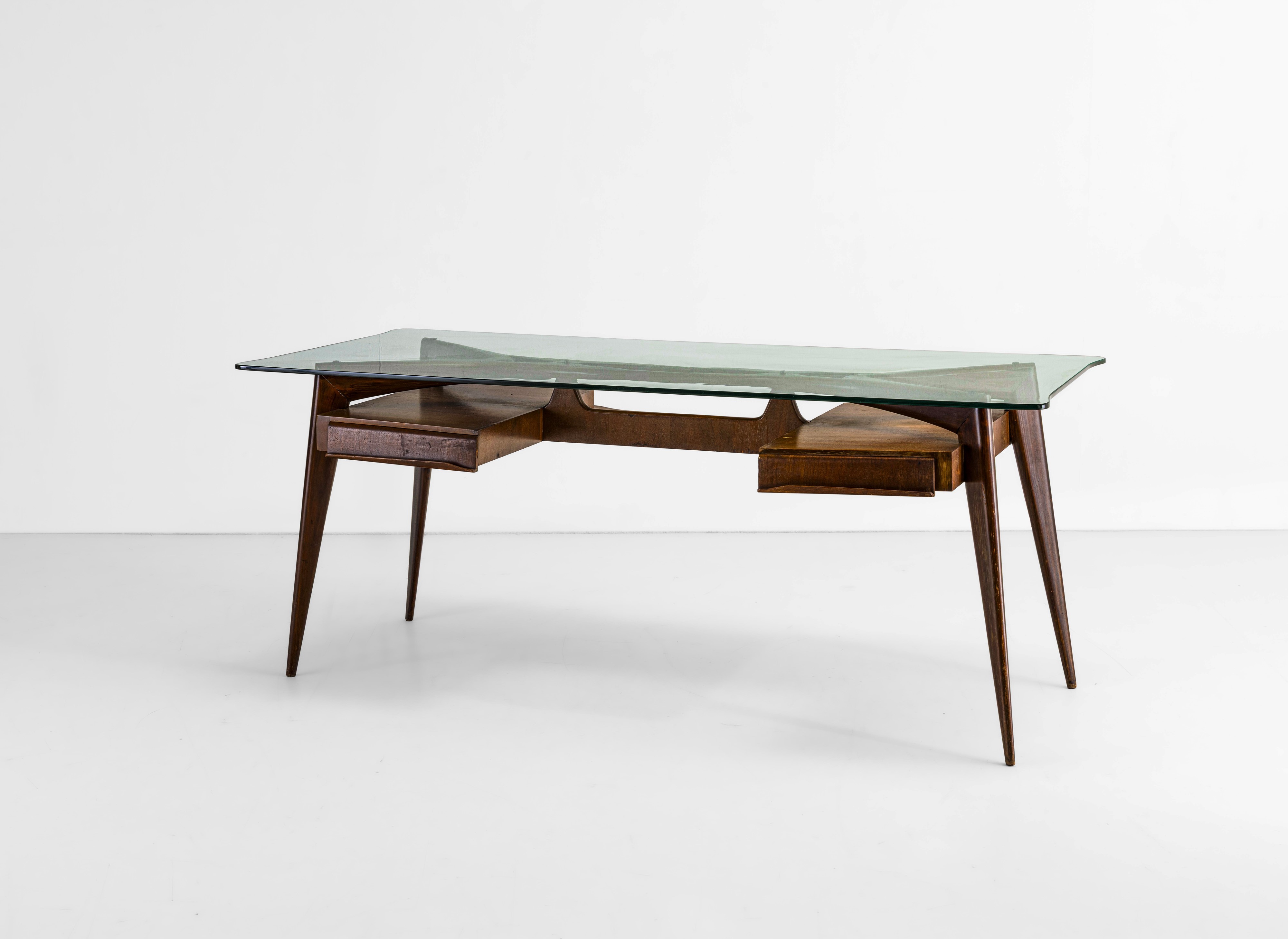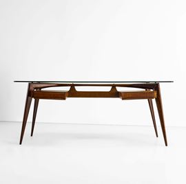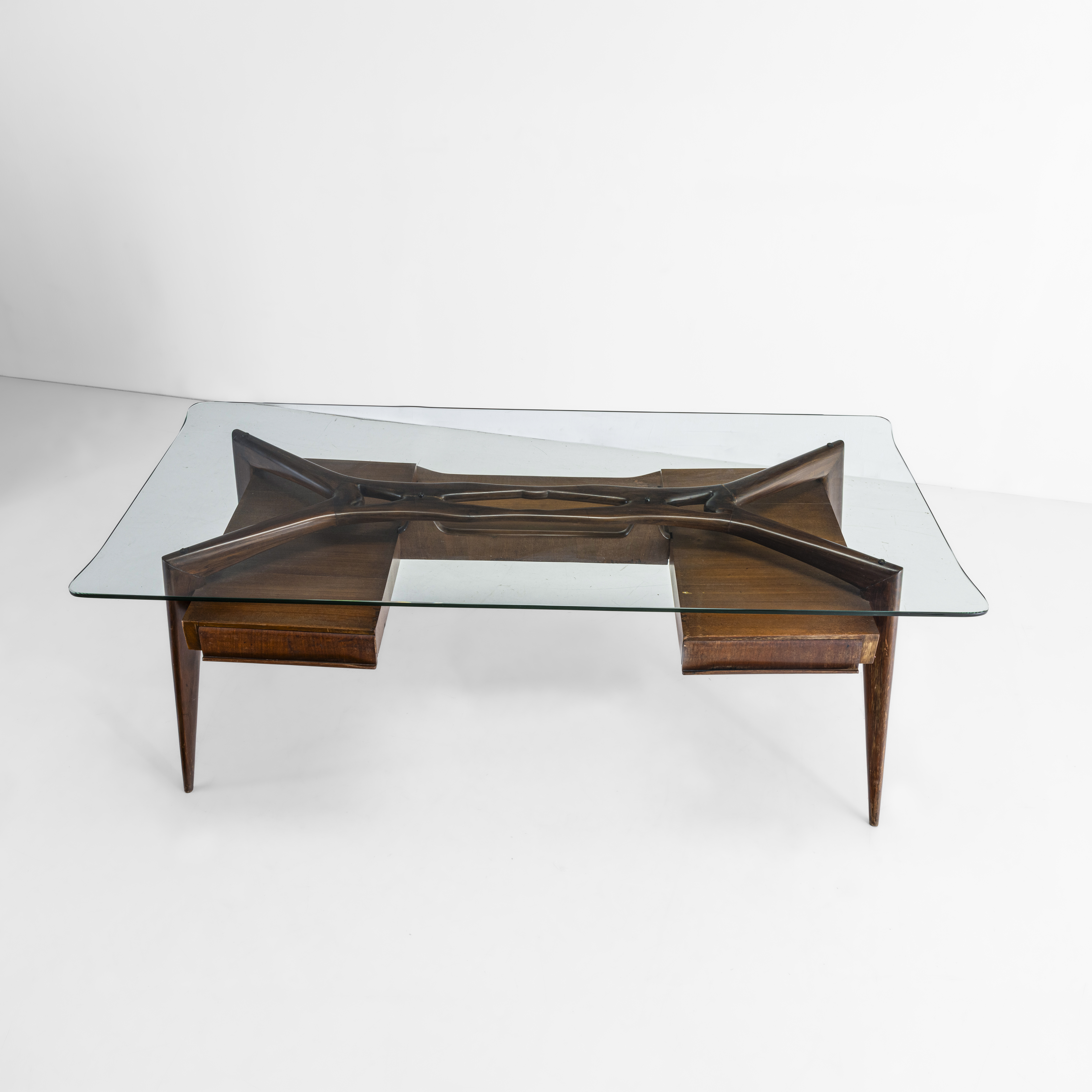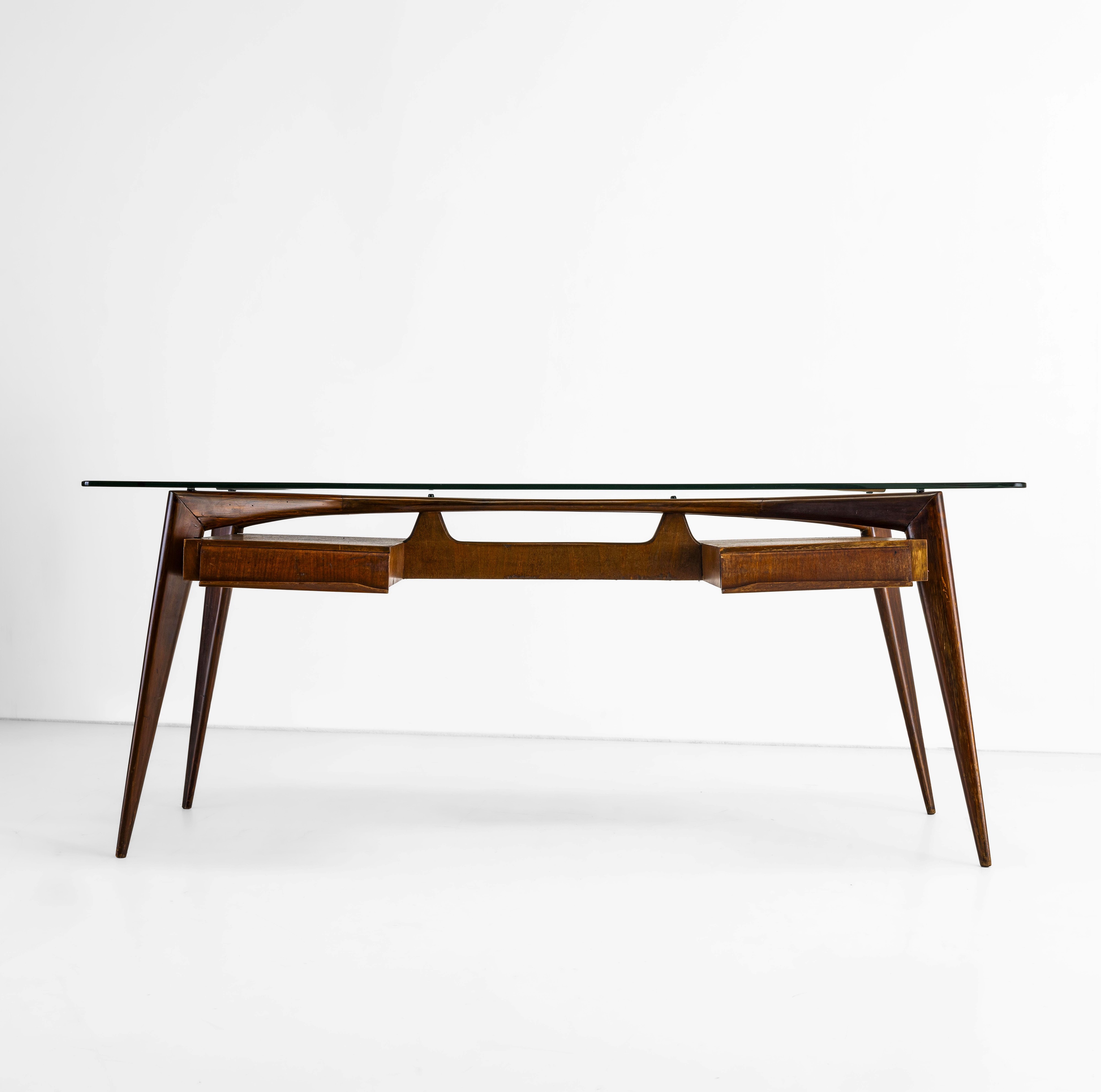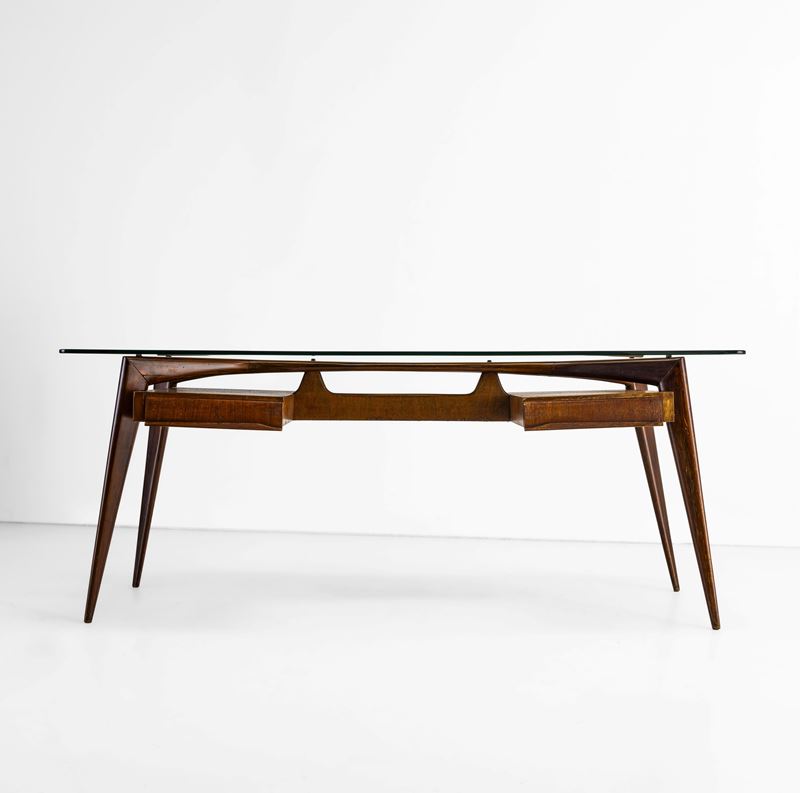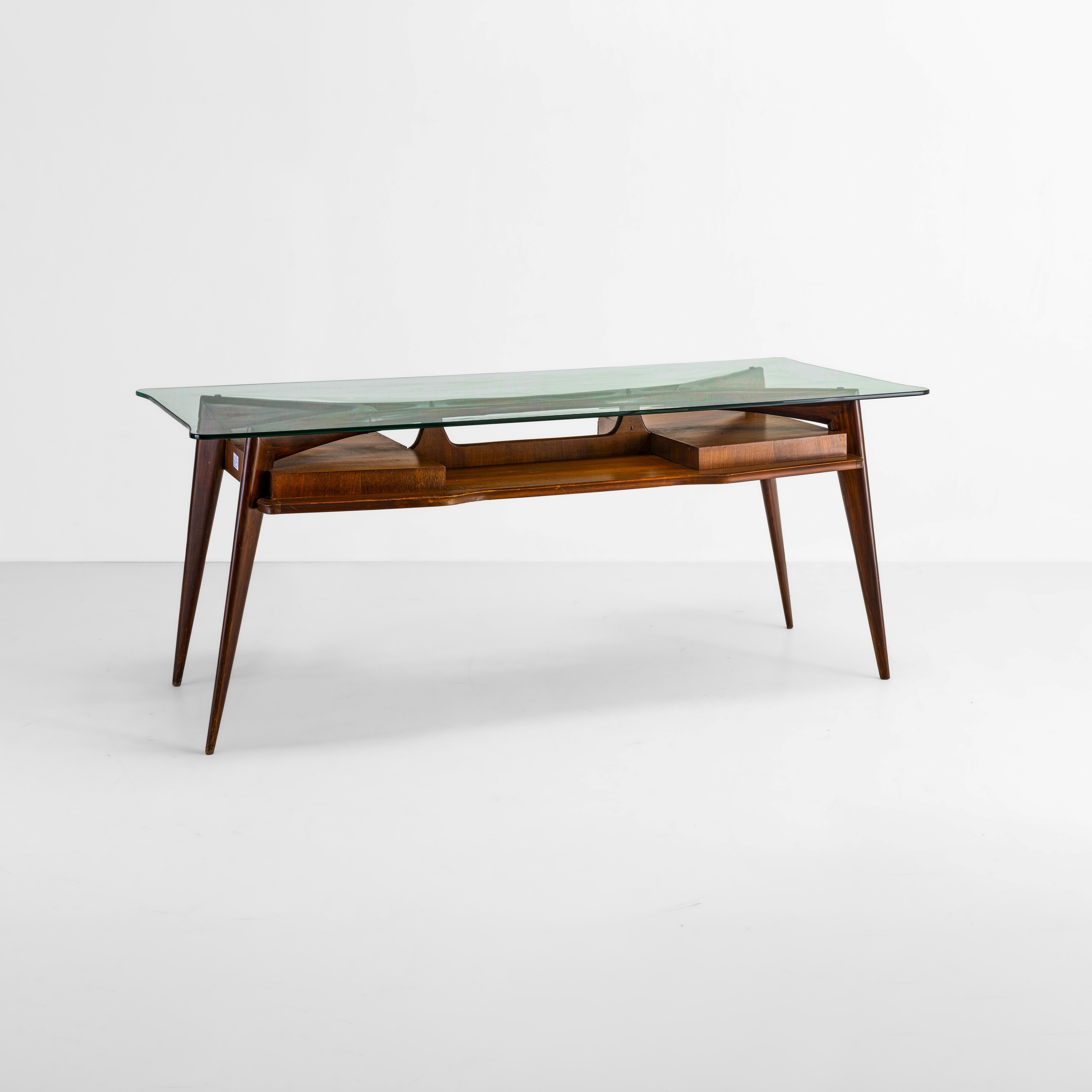 Struttura in legno, piano in cristallo molato.