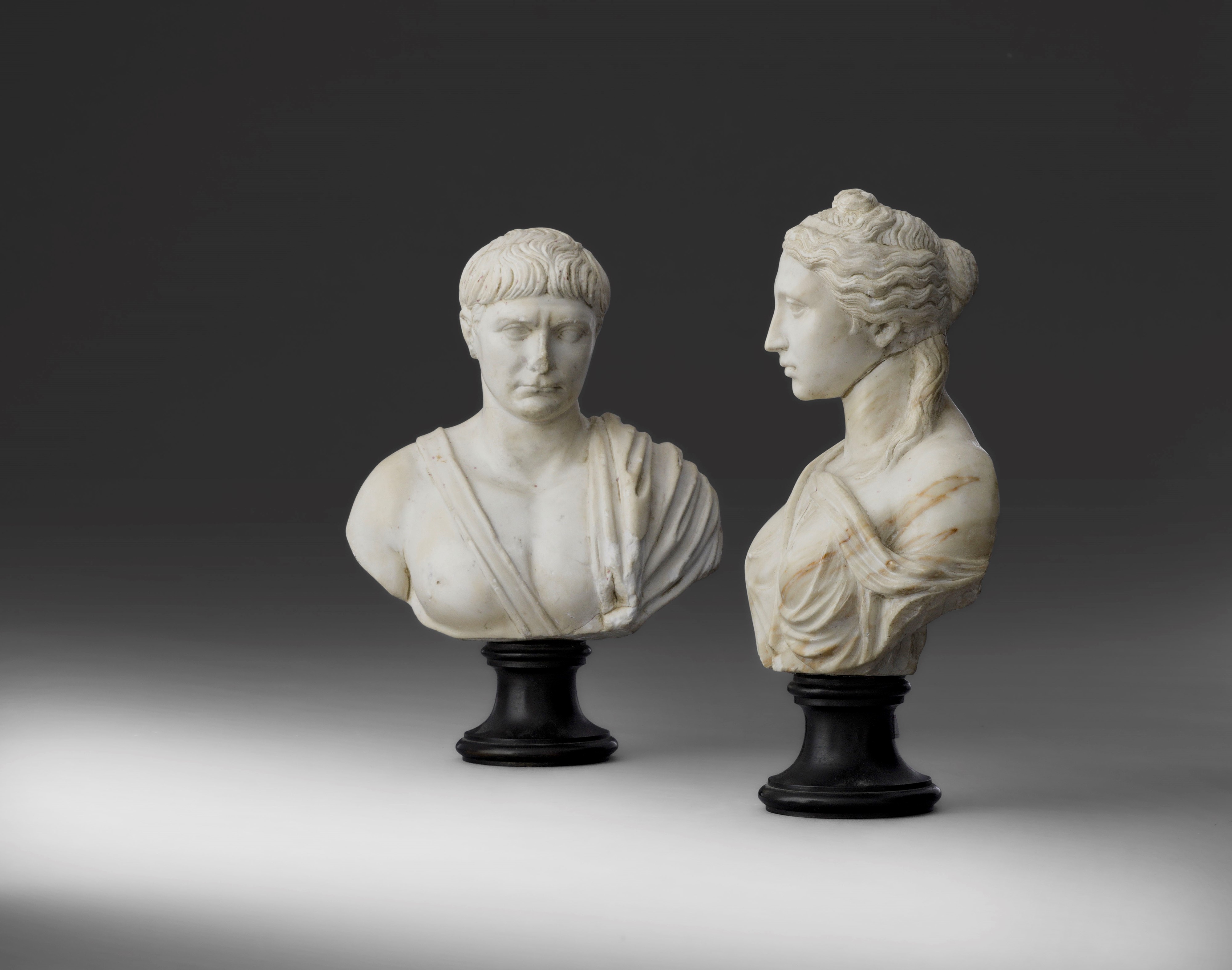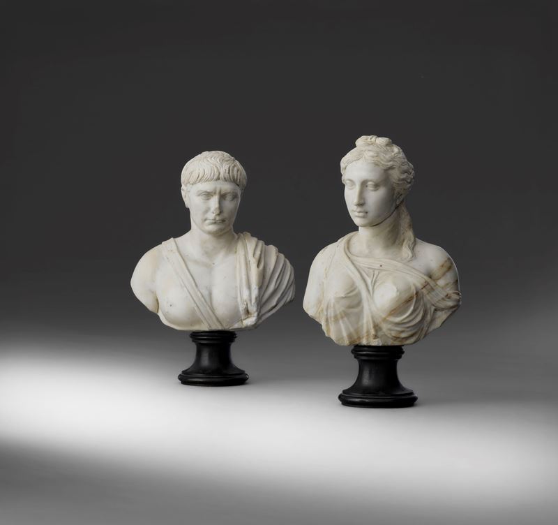 Busti raffiguranti l'imperatore Claudio e un'imperatrice (Agrippina Minore?). Arte neoclassica, Italia, XVIII secolo