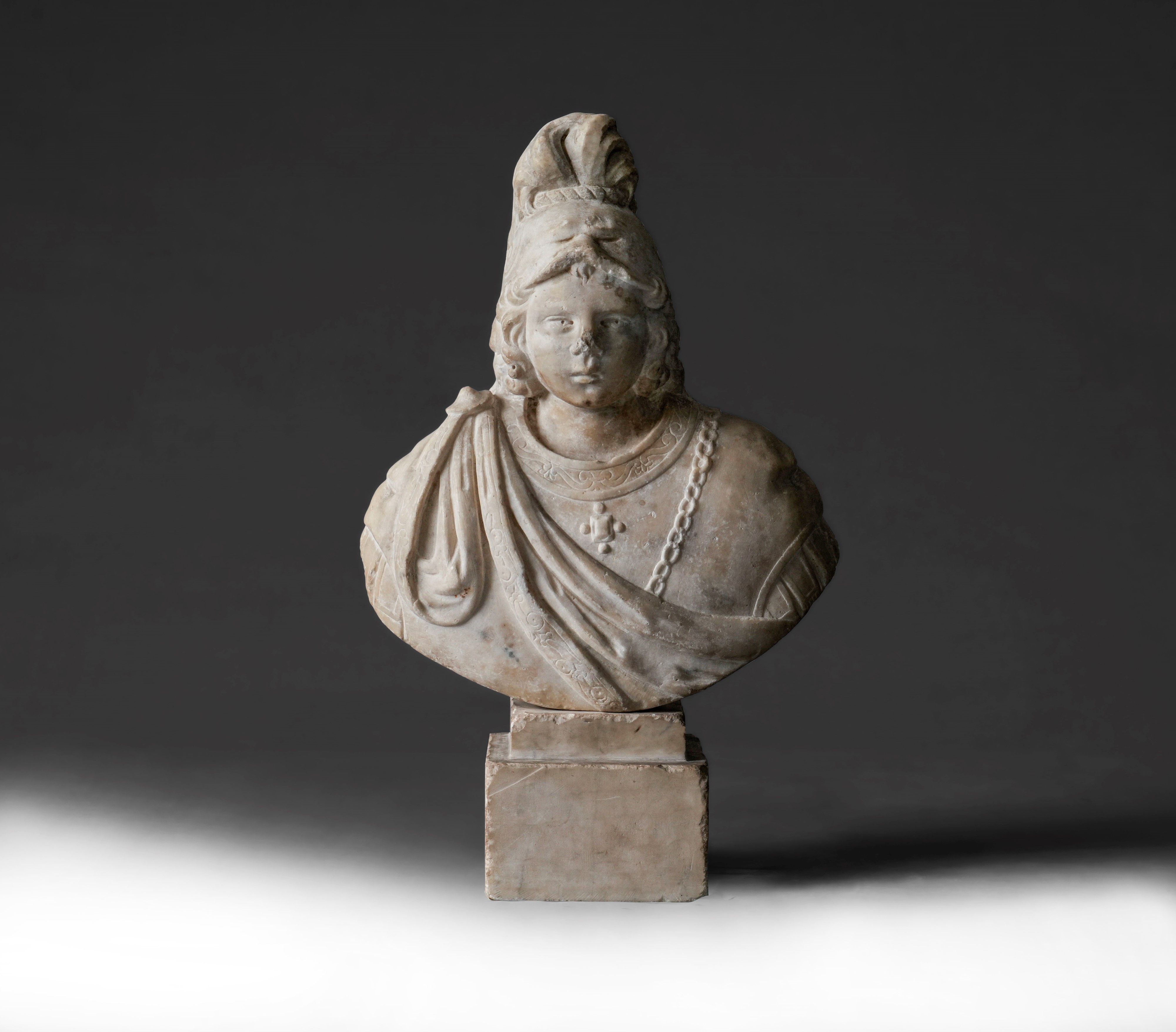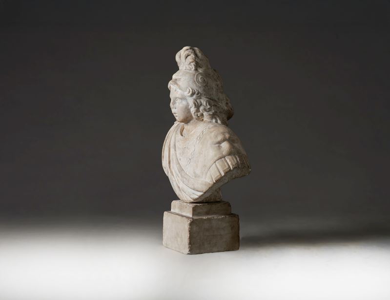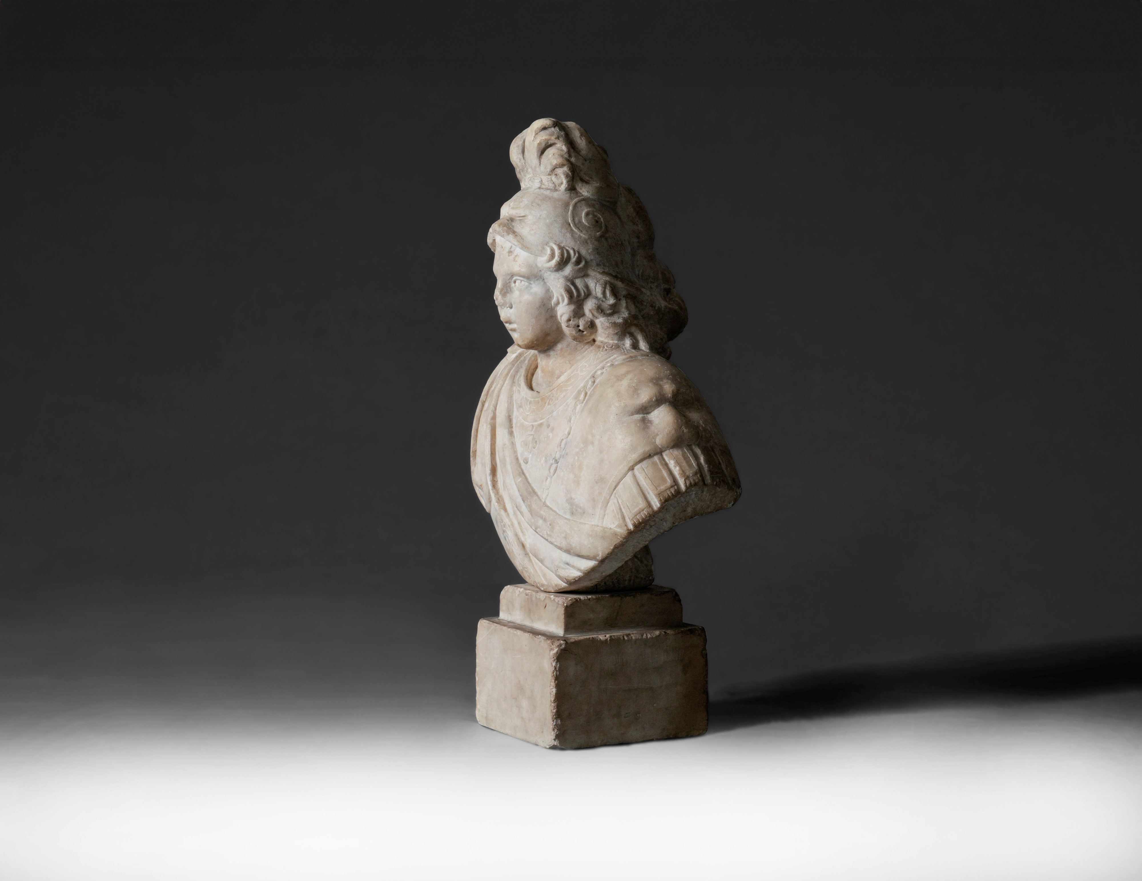 Busto di giovane in armatura e cimiero (Alessandro Magno ?). Arte rinascimentale del XVI secolo